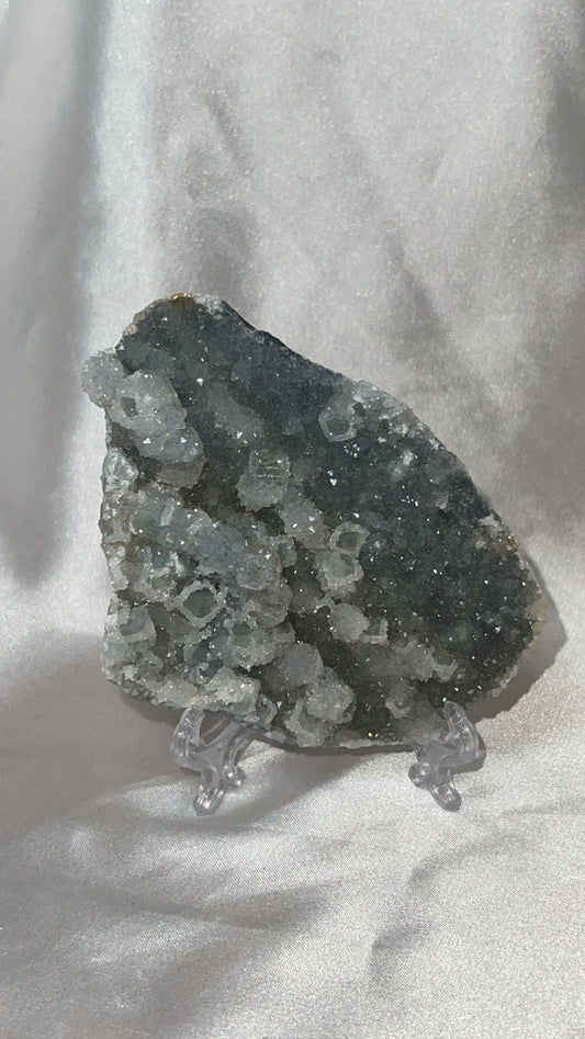 Fujian Green Cubic Fluorite with Druzy Chalcedony Specimen