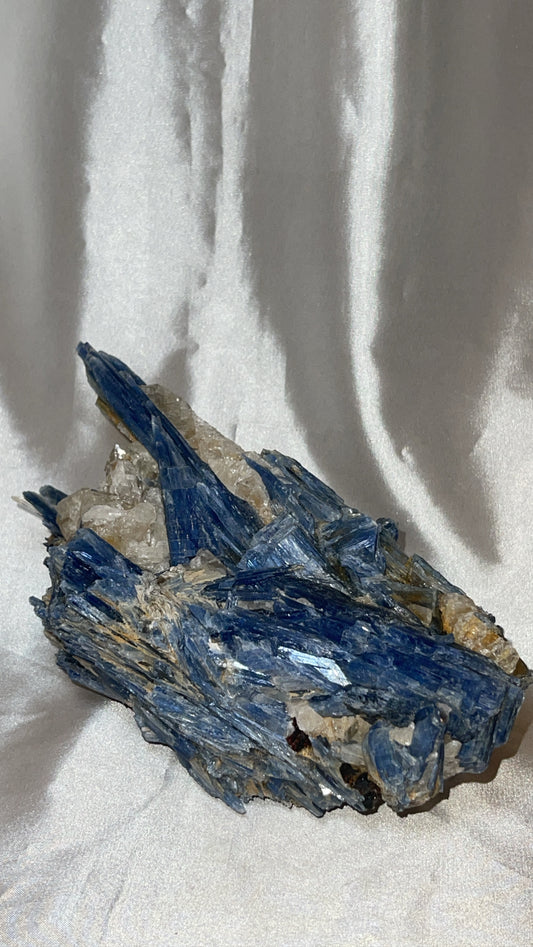 Fujian Indigo Fluorite with Needle Quartz Large Specimen with stand