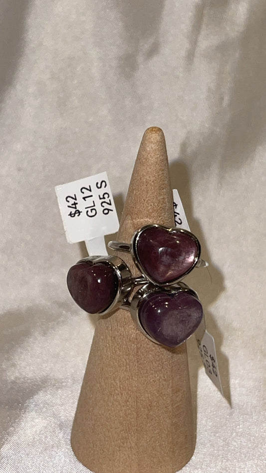 Gem Lepidolite 925 Sterling Silver Adjustable Heart Ring (Choose Your Own)
