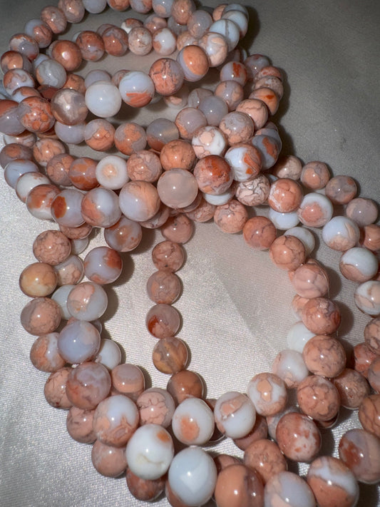 “Cotton Candy” Pink & White Agate 8mm Bracelet