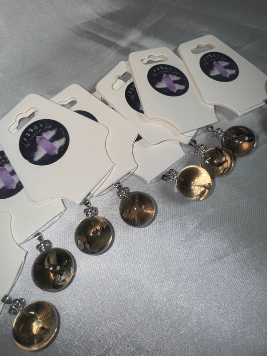 Smoky Quartz Rainbow Sphere 925 sterling silver pendant