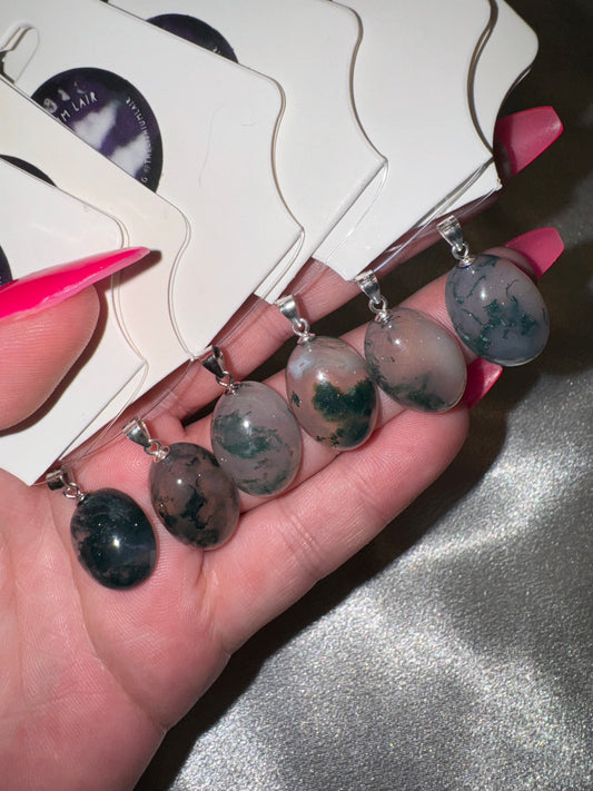 Moss agate Pendant 925S