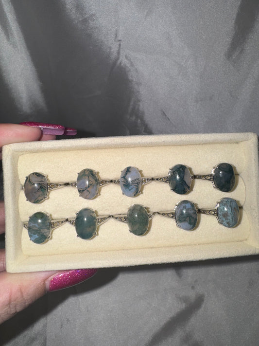 Moss Agate Adjustable Ring