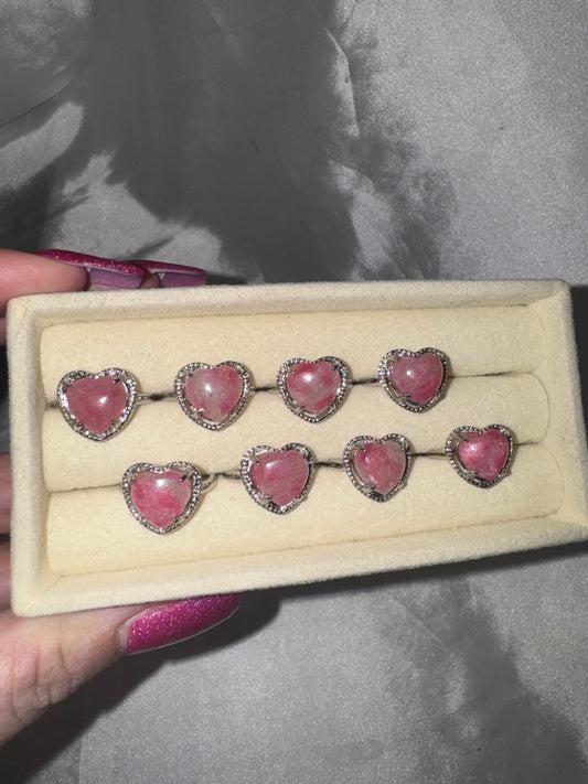 Gem Lepidolite 925 Sterling Silver Adjustable Heart Ring