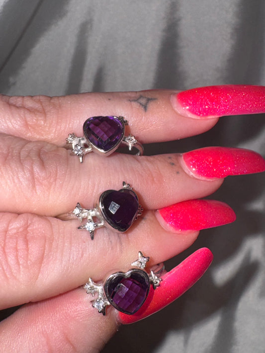 Amethyst AAA Faceted Heart 925 Adjustable Ring
