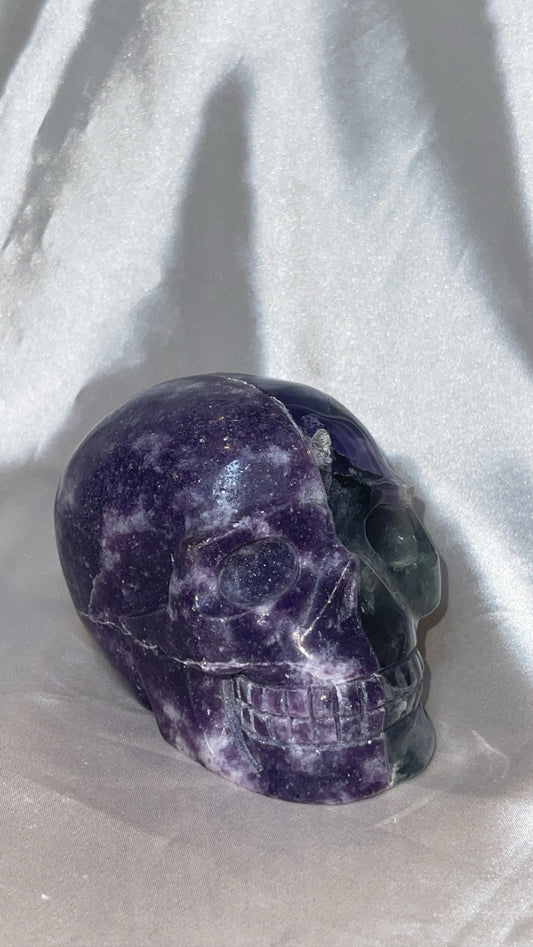 Half Lepidolite Half Fluorite XL Skull