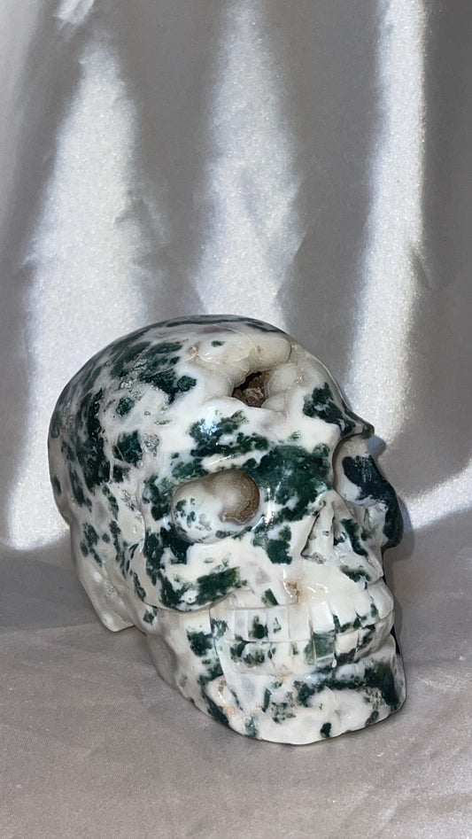 Druzy Moss Agate XL Skull