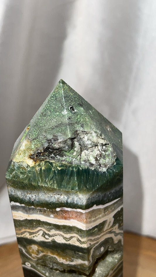 Sold outDruzy Green Ocean Jasper XL Tower