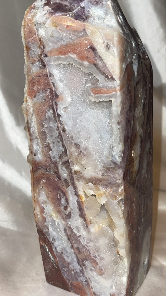 Druzy Sphalerite with Pink & Purple Fluorite XL Tower