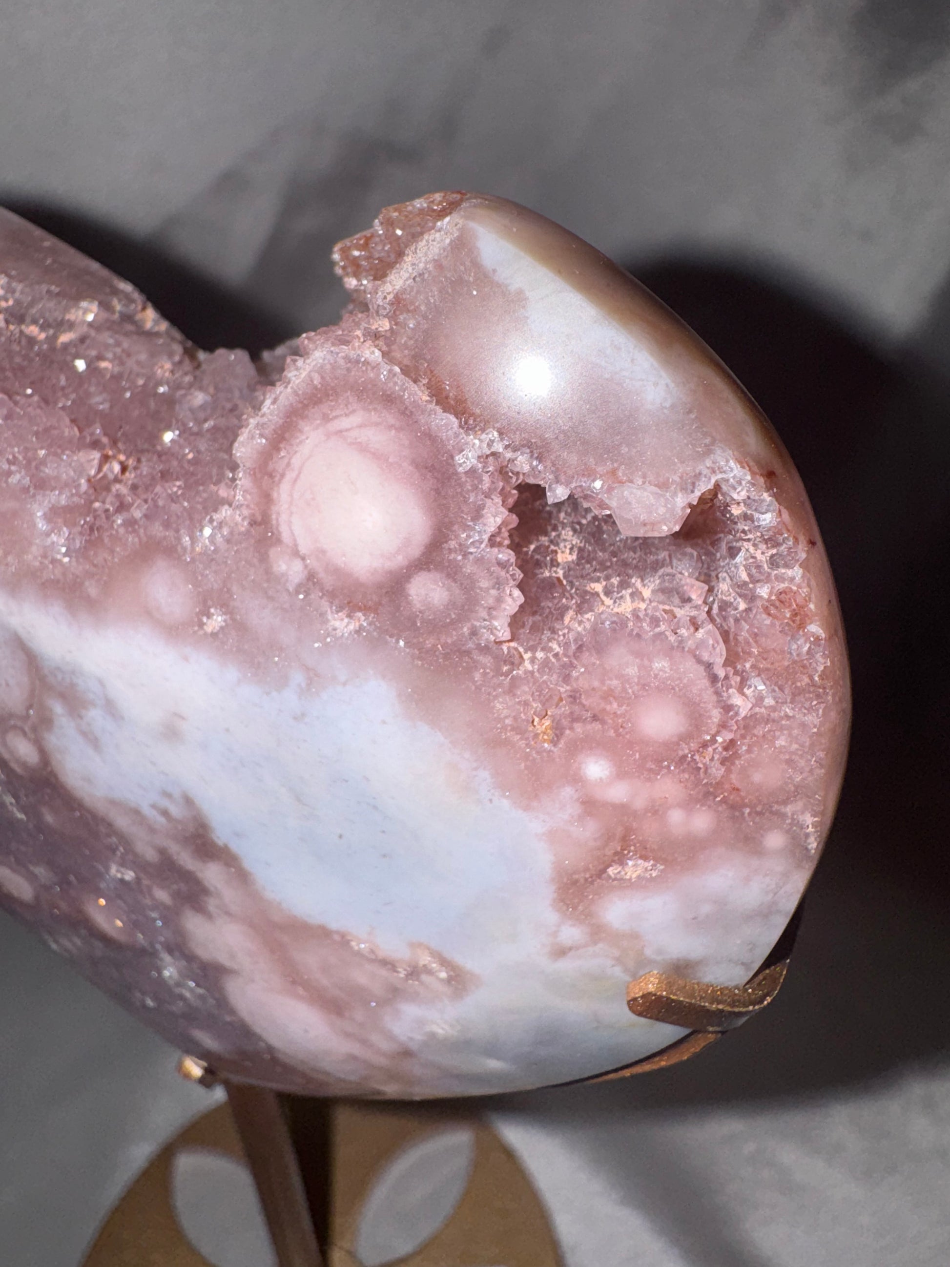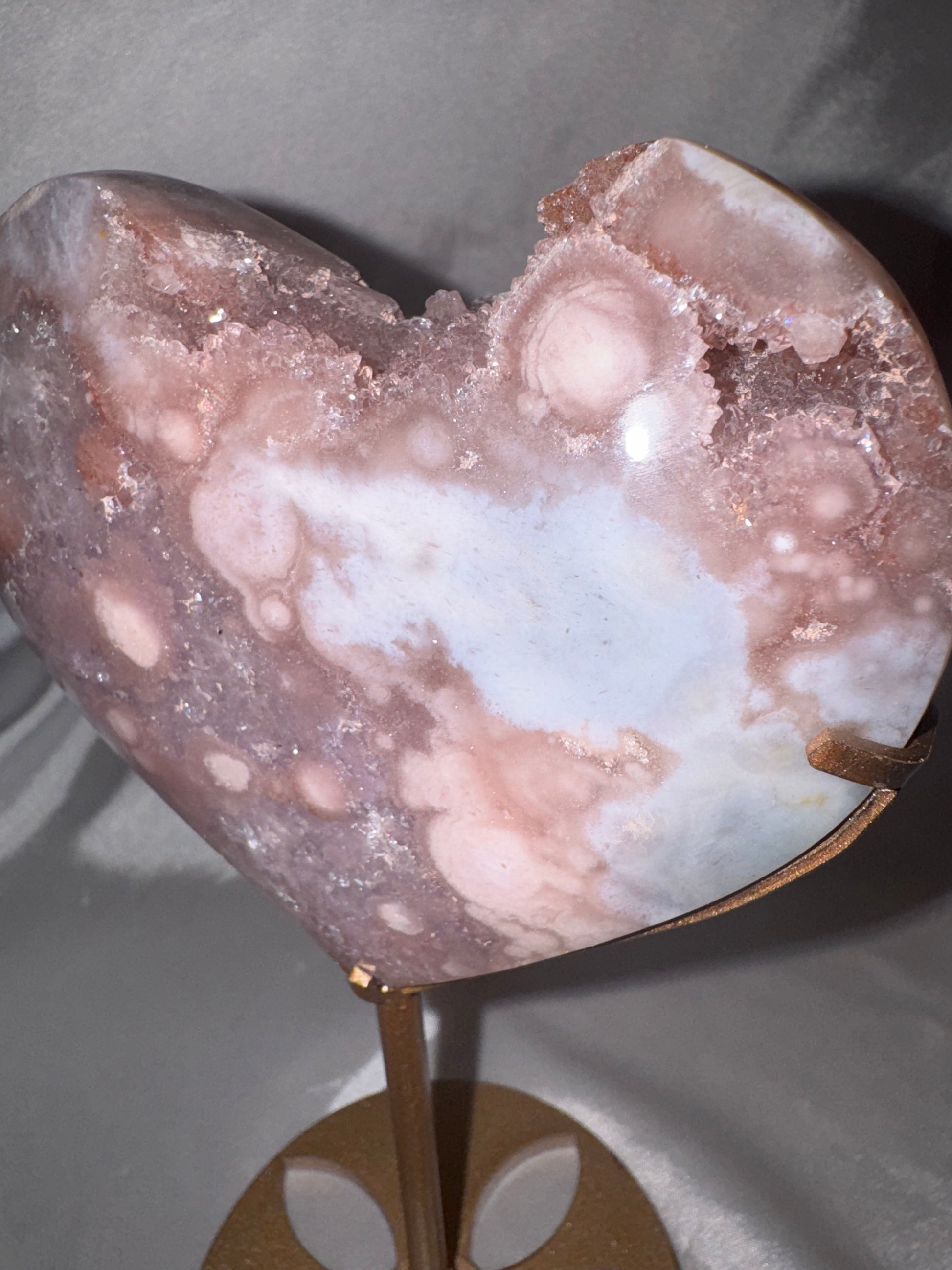 1- AAA grade Amethyst Flower Agate XL heart on metal stand