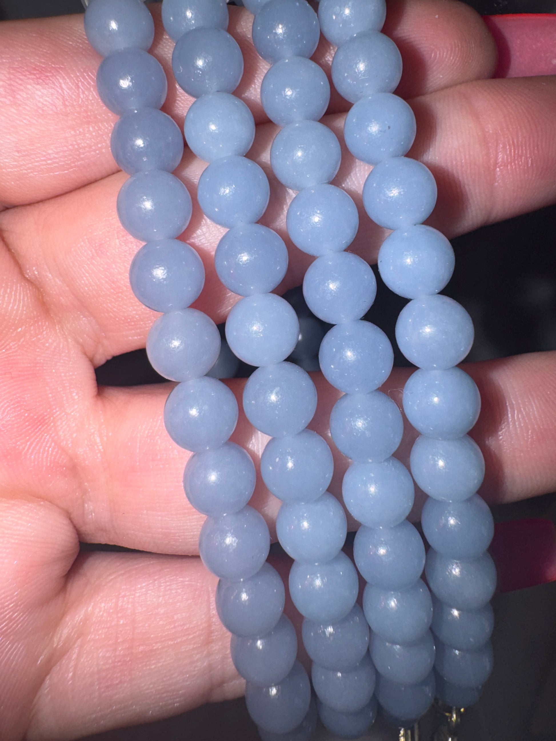 Angelite AAA 6mm Bracelet with Pochacco Pumpkin Charm