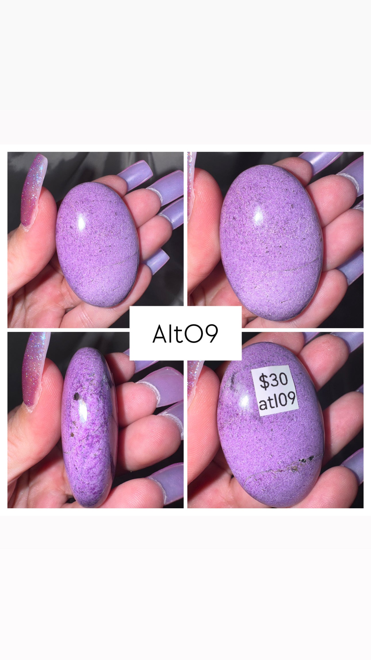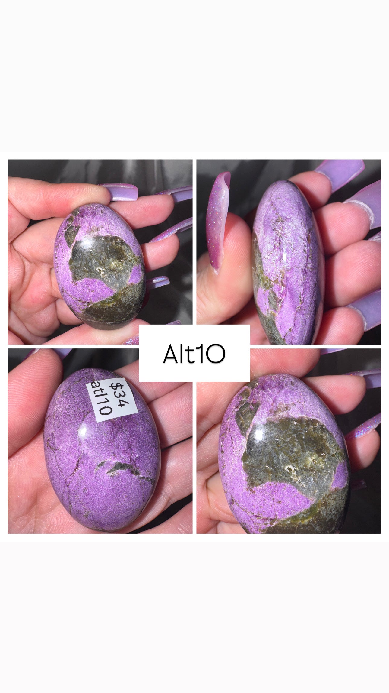 1- atlantasite (stitchtite & serpentine) palmstone (from Australia)