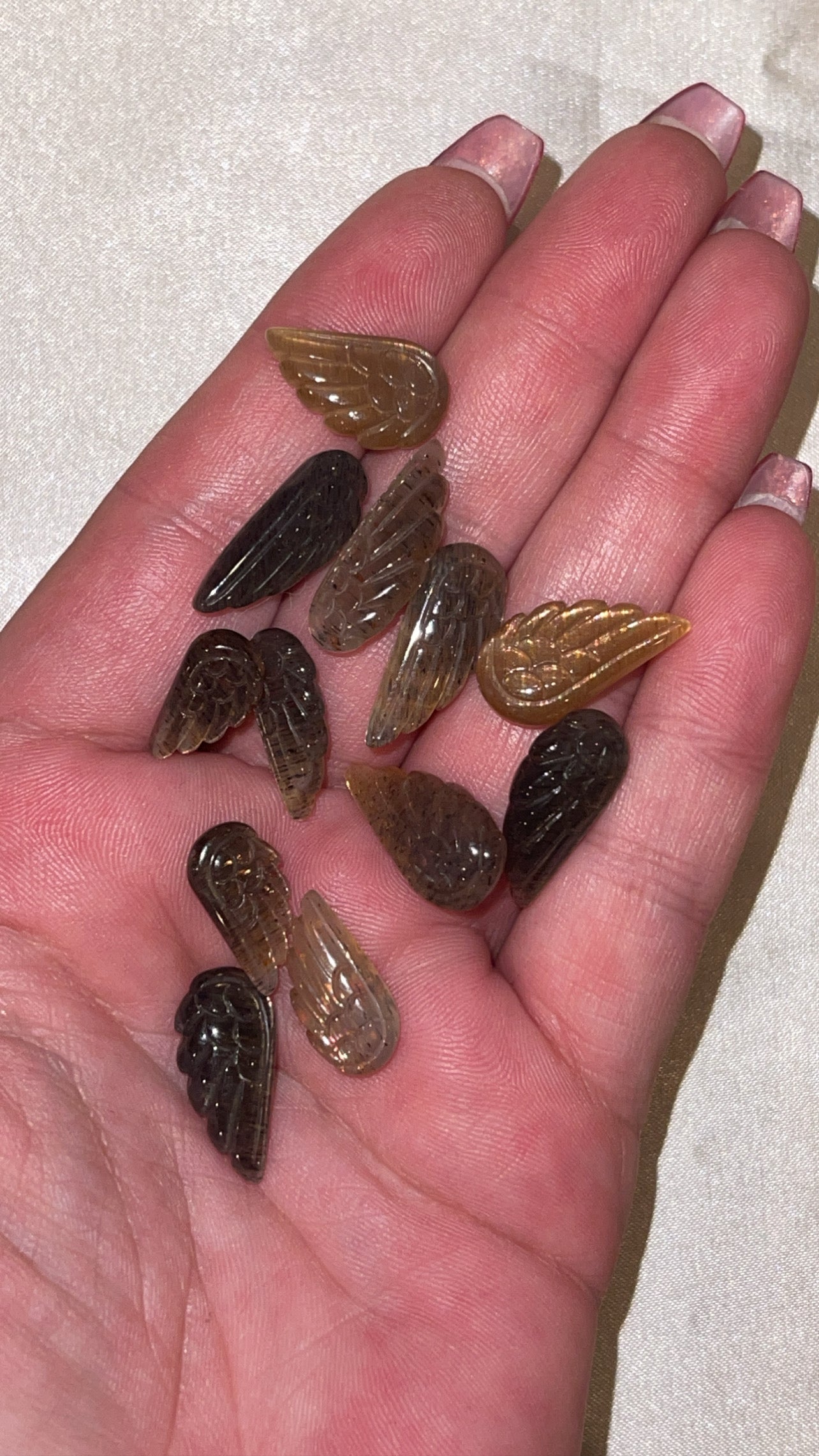 1- high grade Black Sunstone mini angel wing