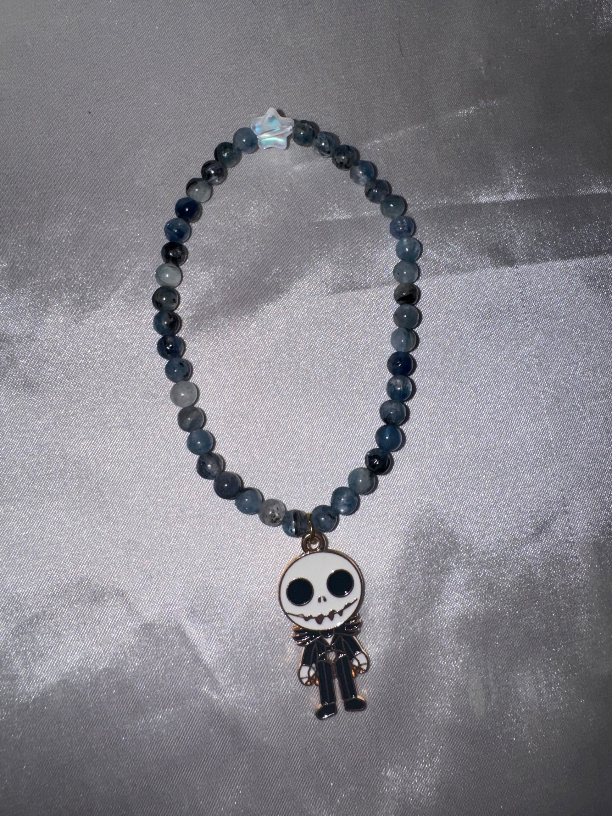 Blue Kyanite 4mm Bracelet with Jack Skellington Charm (last one!)
