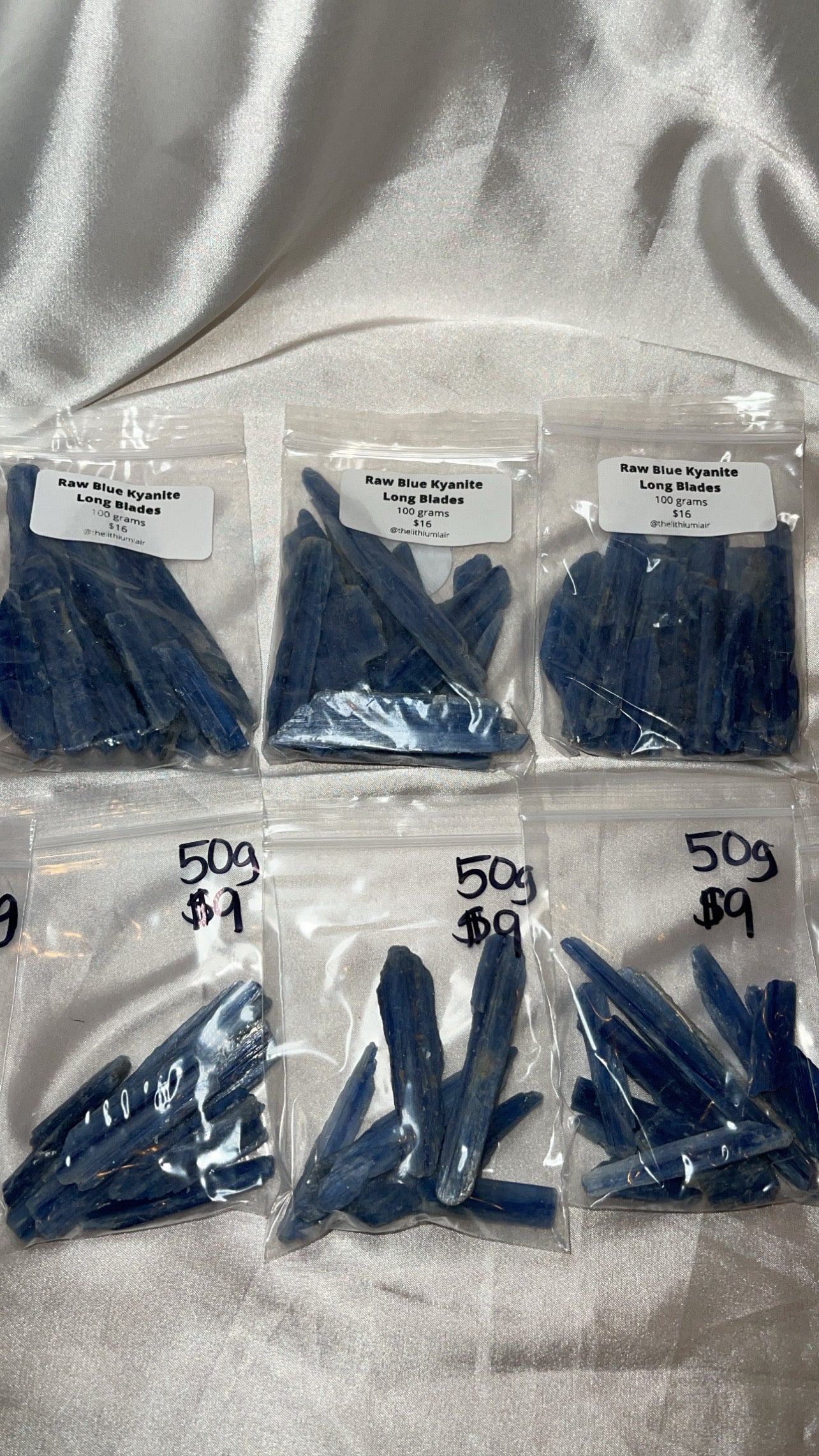 1- bundle of either 50 grams or 100 grams of high grade Raw Blue Kyanite Long Blades from Brazil
