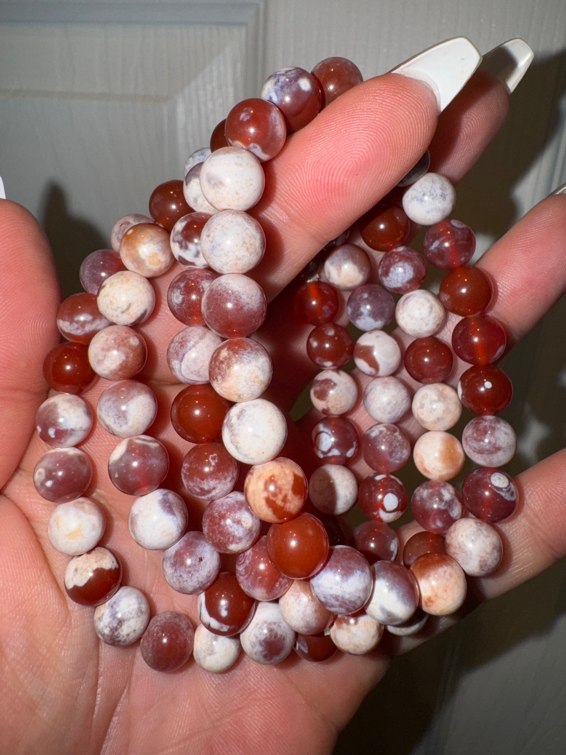 All bracelets are double strung with stretchy string. They are all measured at 7 inches around.