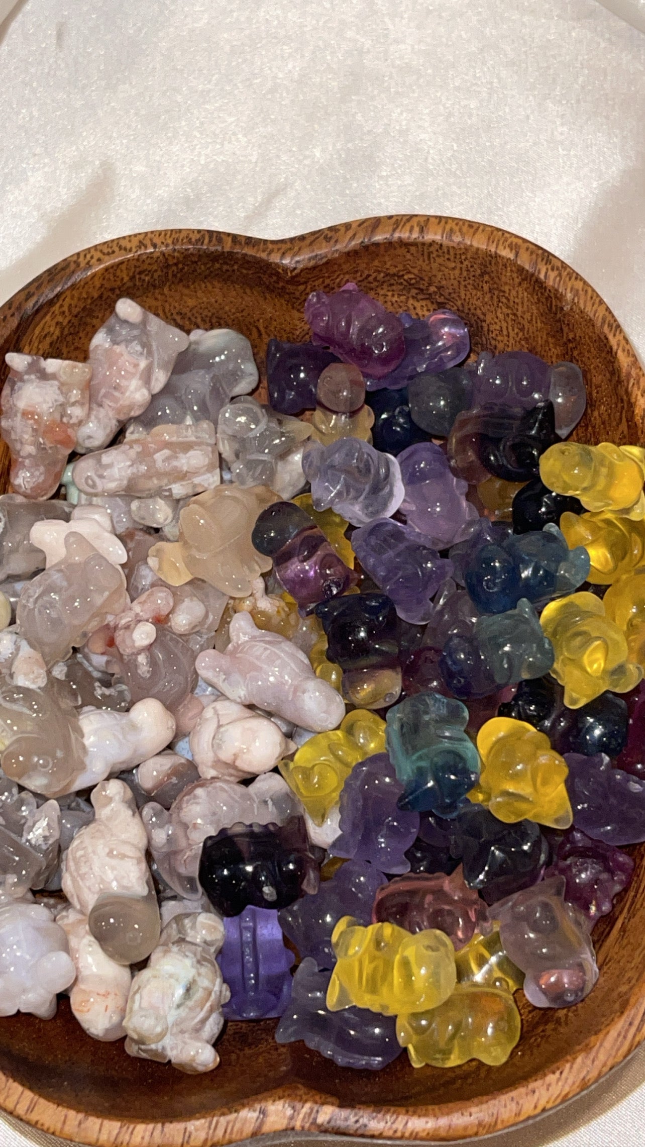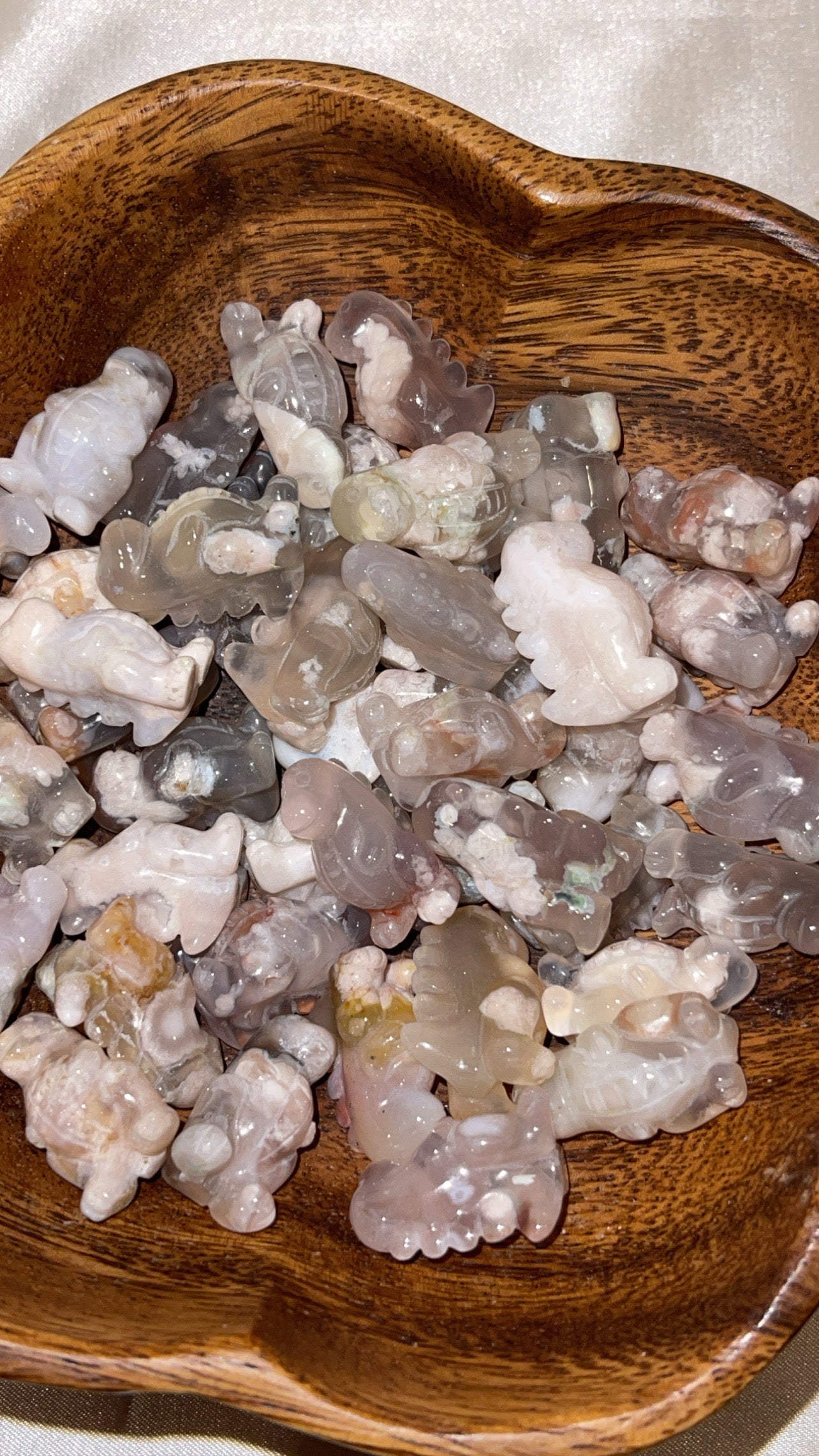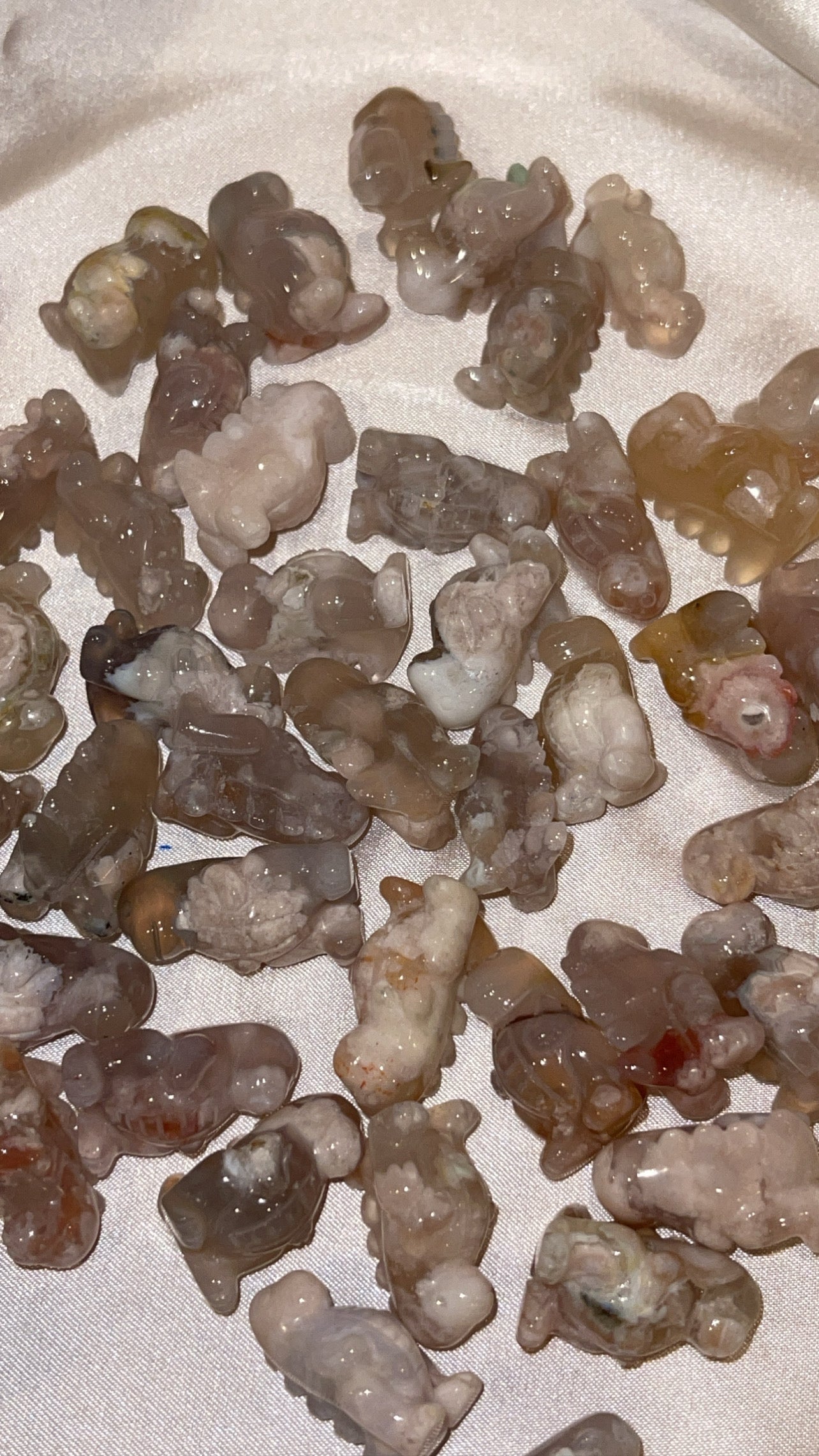 Approximately 15mm x 24mm for flower agate and 10mm x 17mm for fluorite.