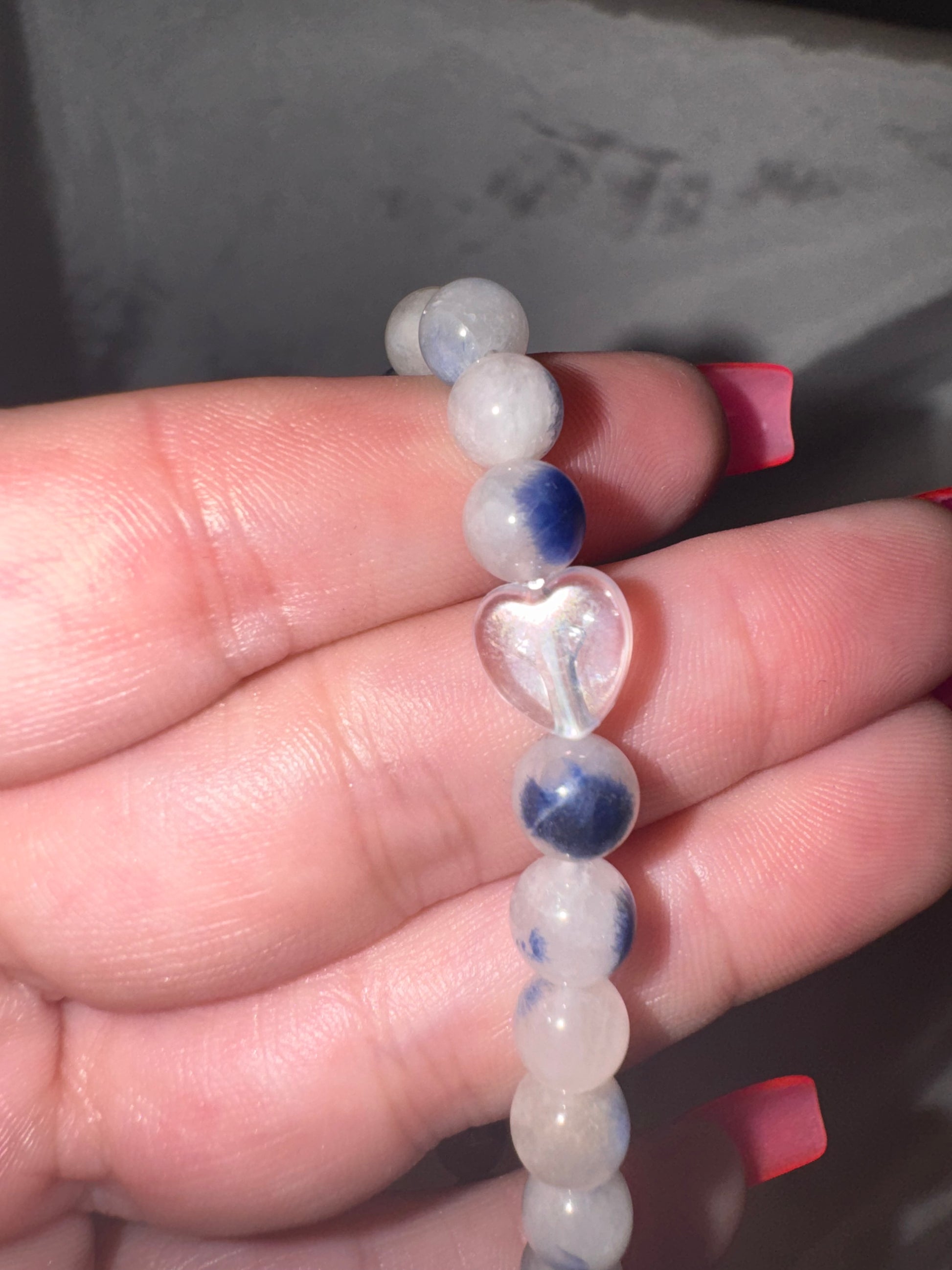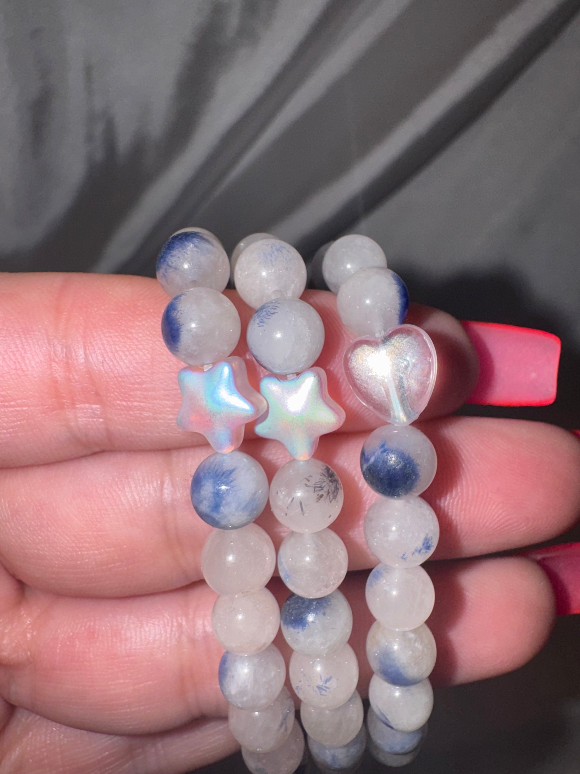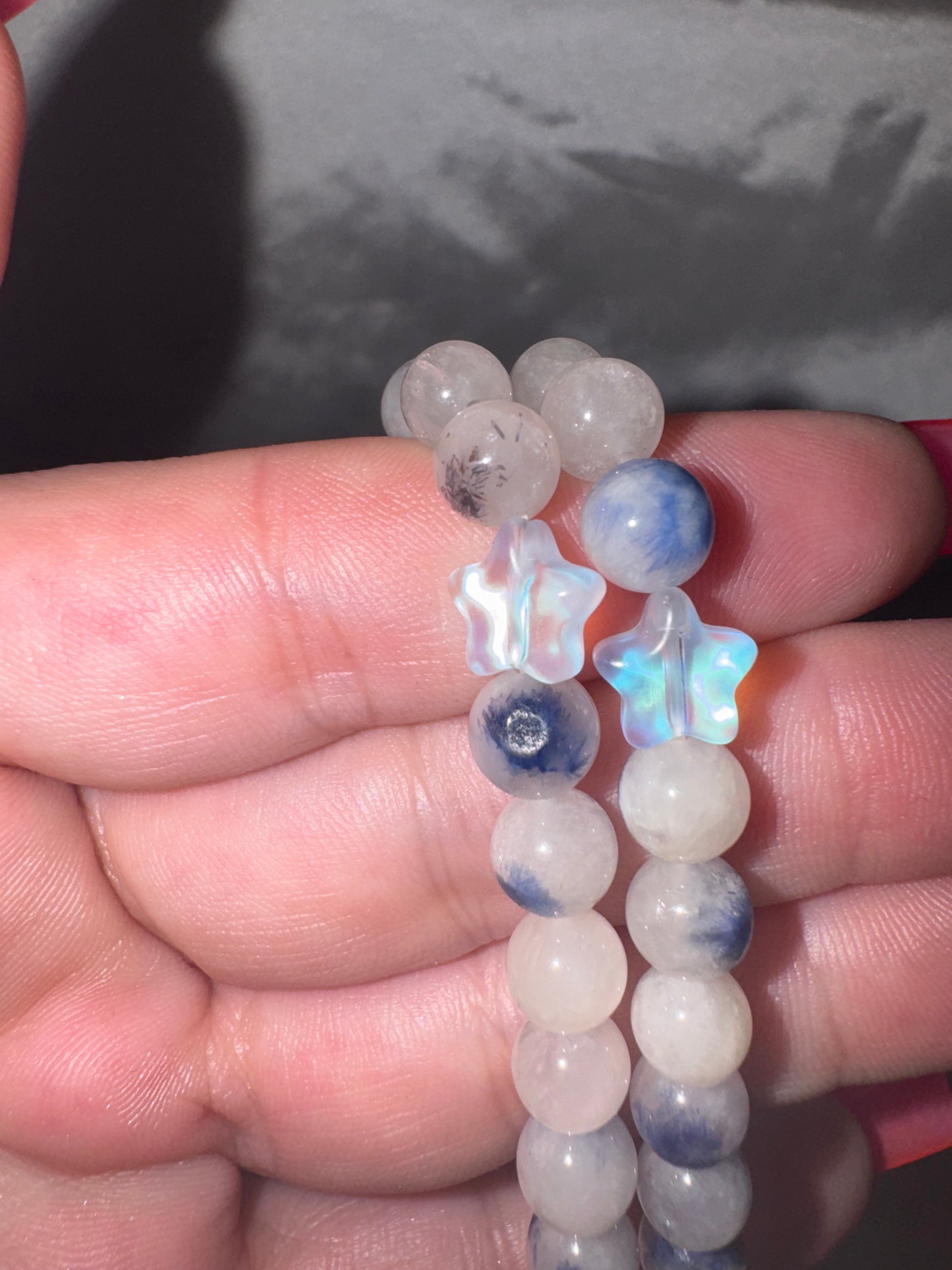 1- rare Dumortierite quartz 6mm bracelet with Sally Charm (choose between aura star or aura heart middle back bead)