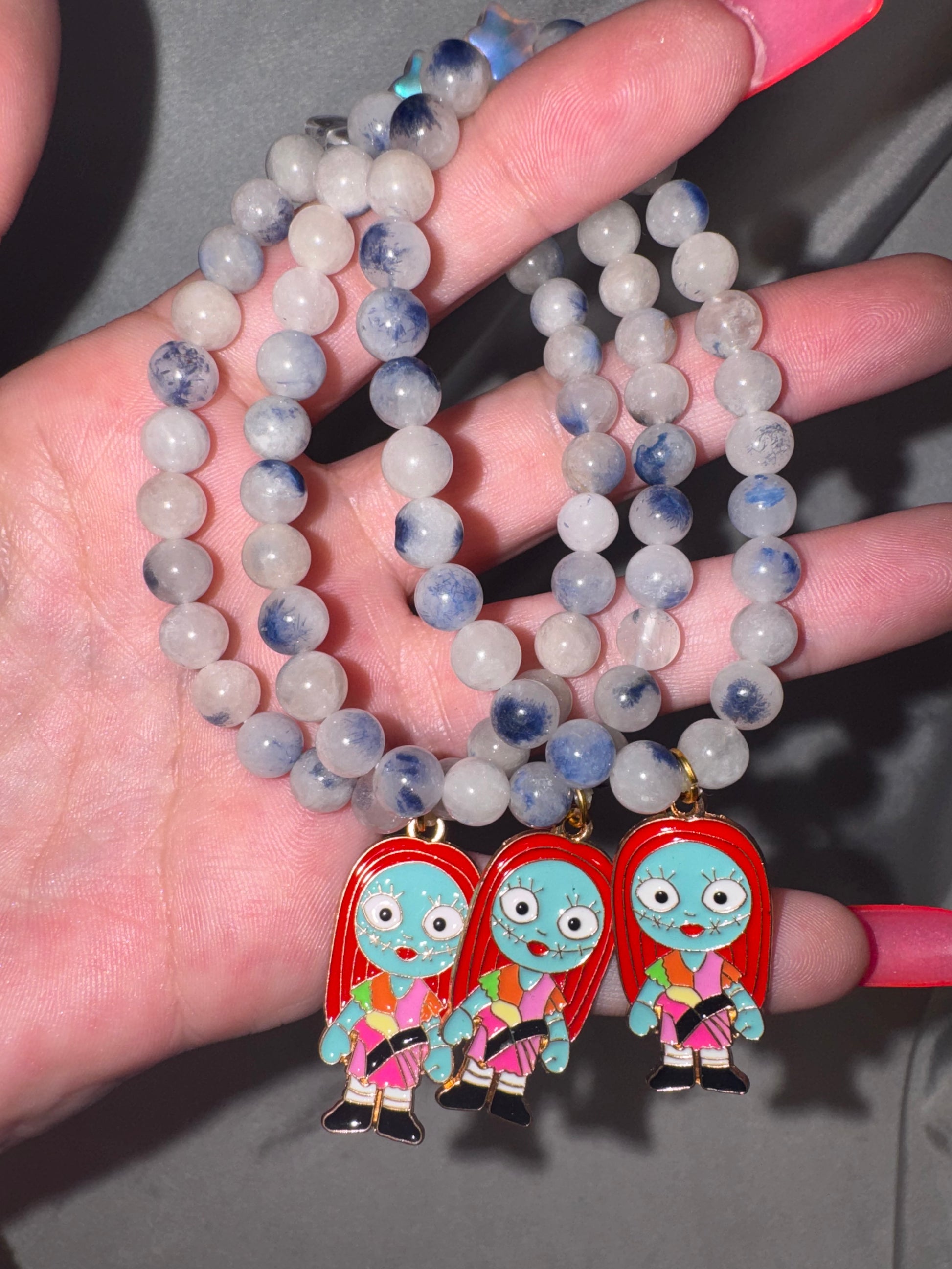 All our bracelets are made right here at The Lithium Lair LLC. They are all double strung with stretch string unless stated otherwise and are approximately 7 inches around.