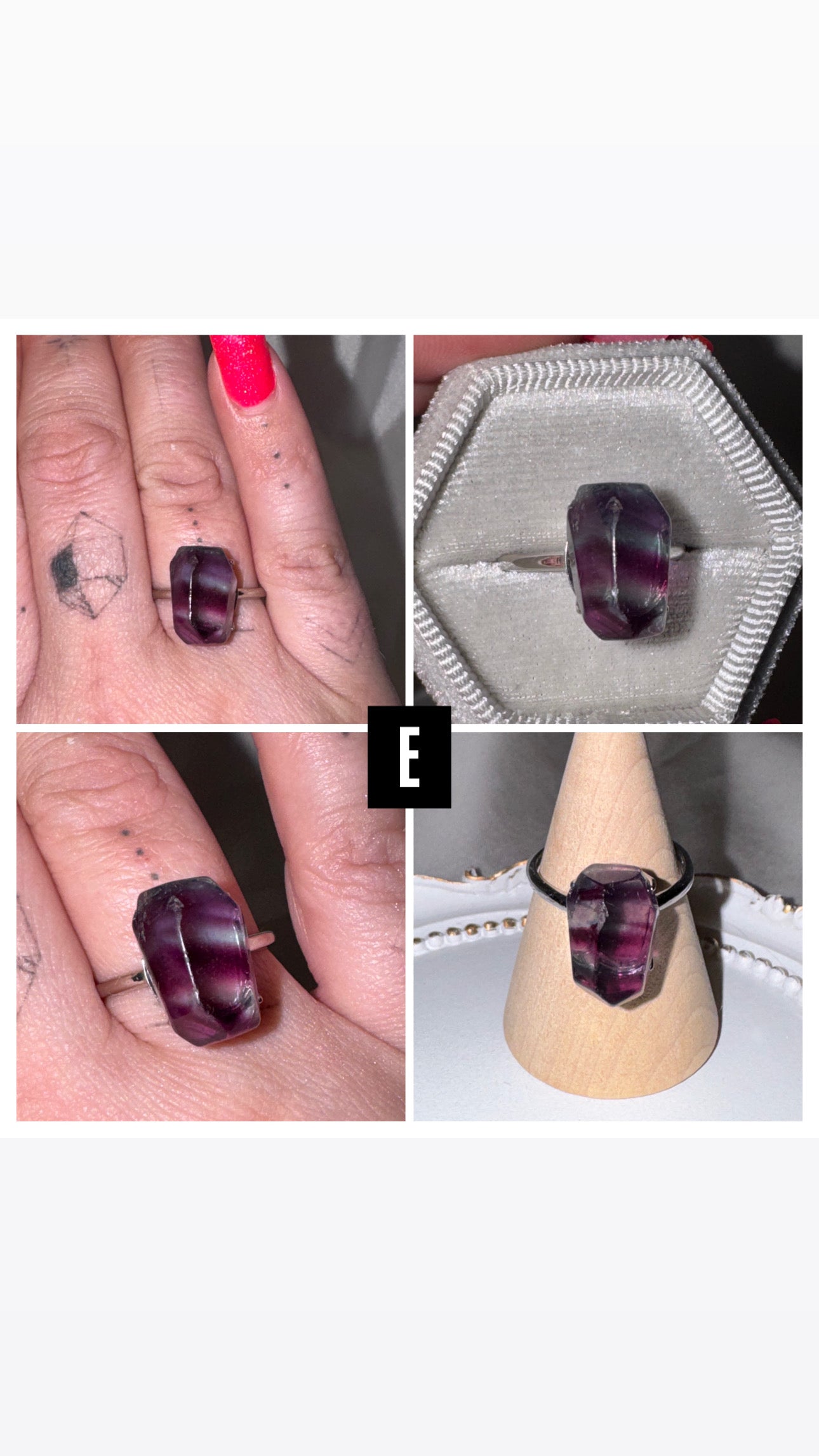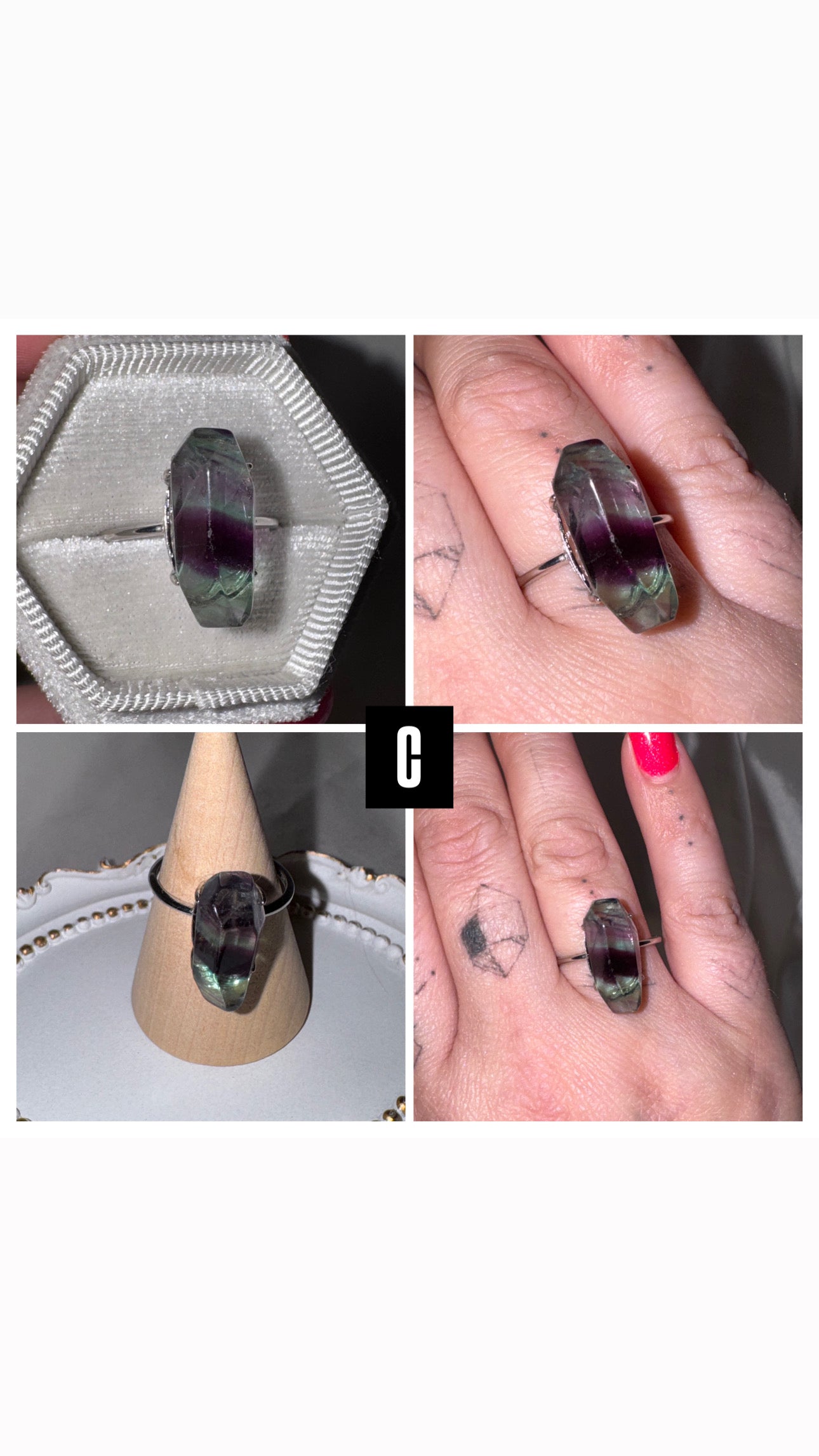 1- AAA grade Fluorite freeform 925 sterling silver adjustable ring