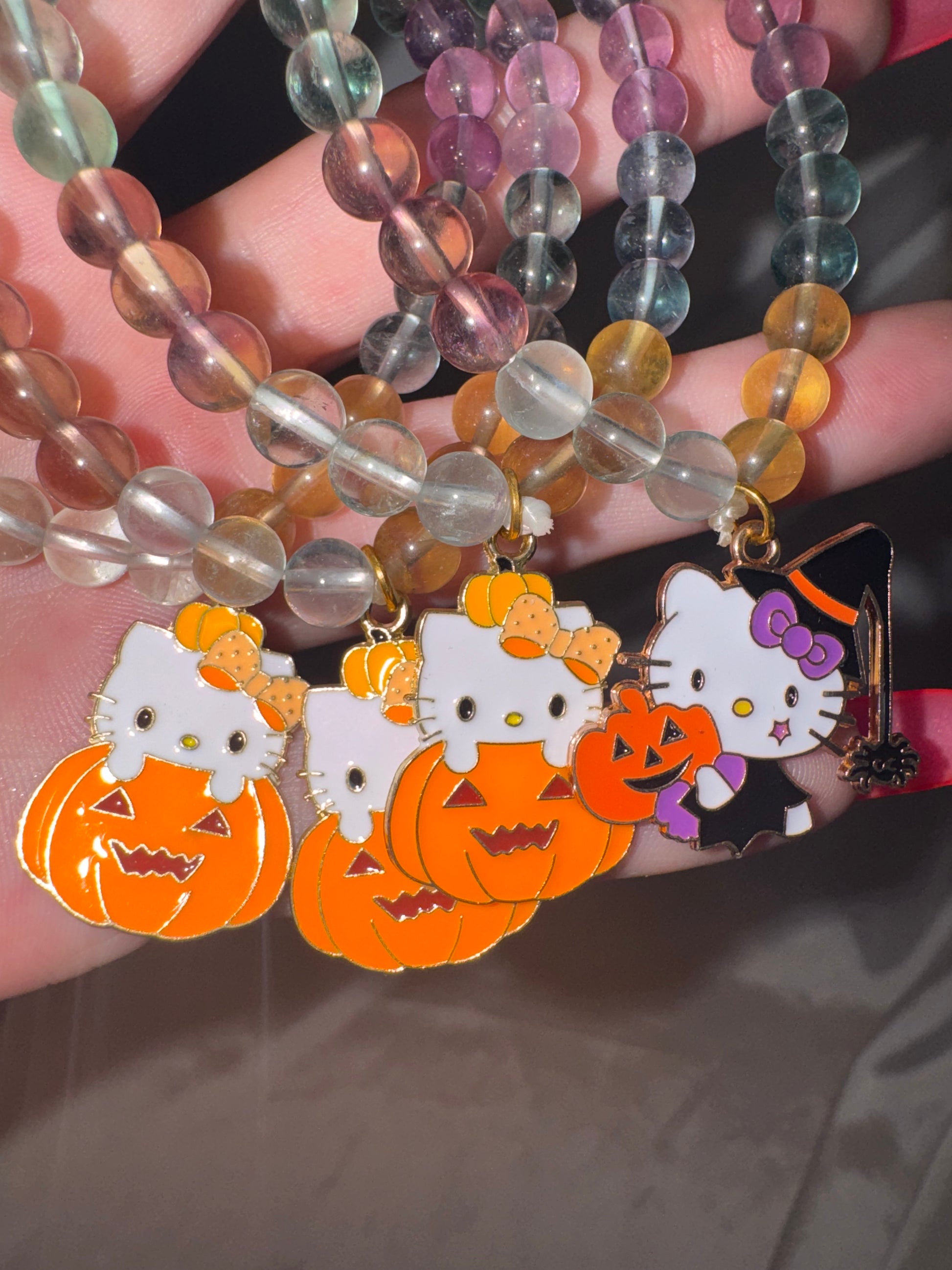 1- AAA grade Multicolored Fluorite 6mm bracelet with Hello Kitty charm (choose between witch or pumpkin)