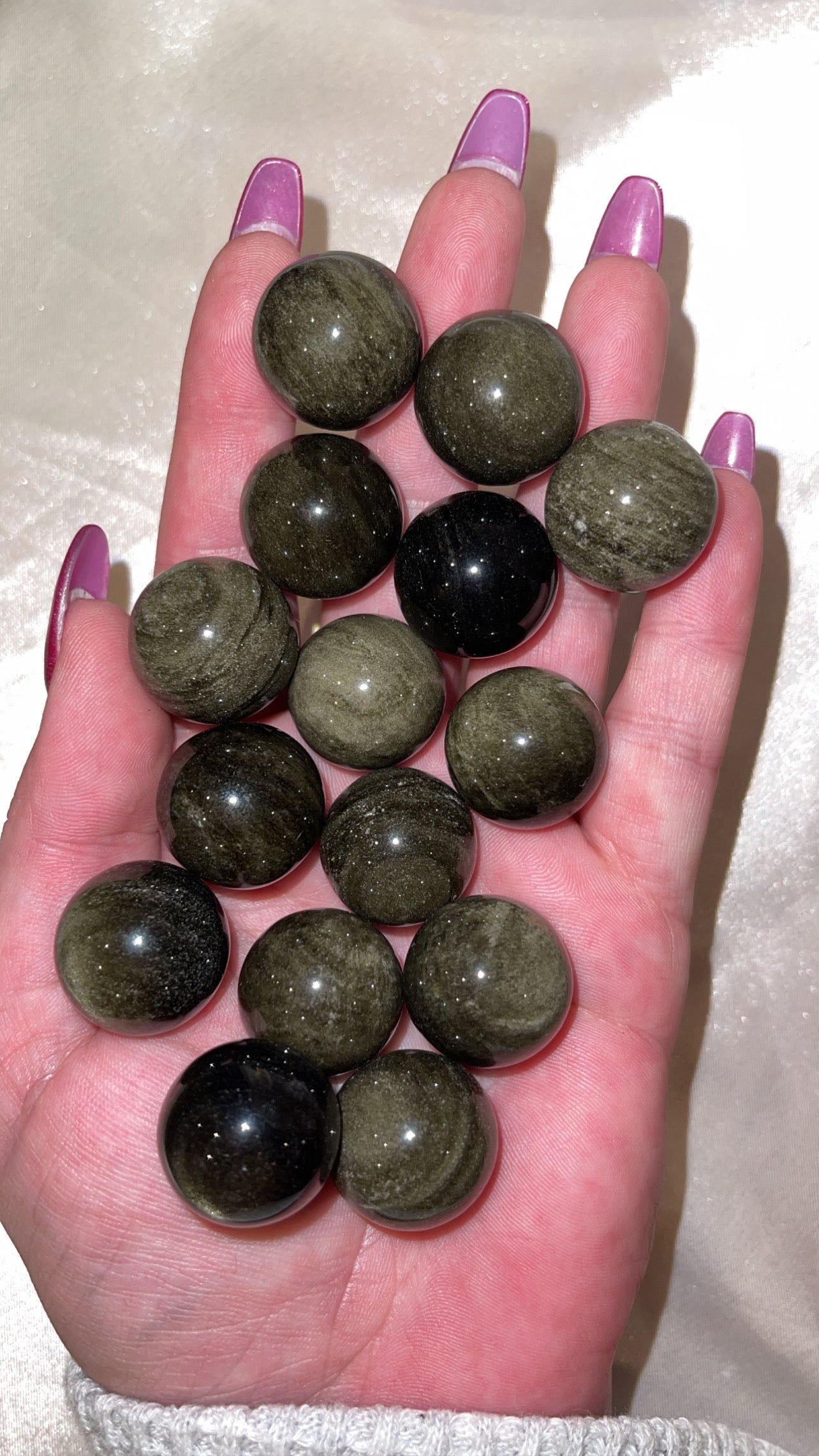 1- gold/silver sheen obsidian sphere (choose between gold or silver)