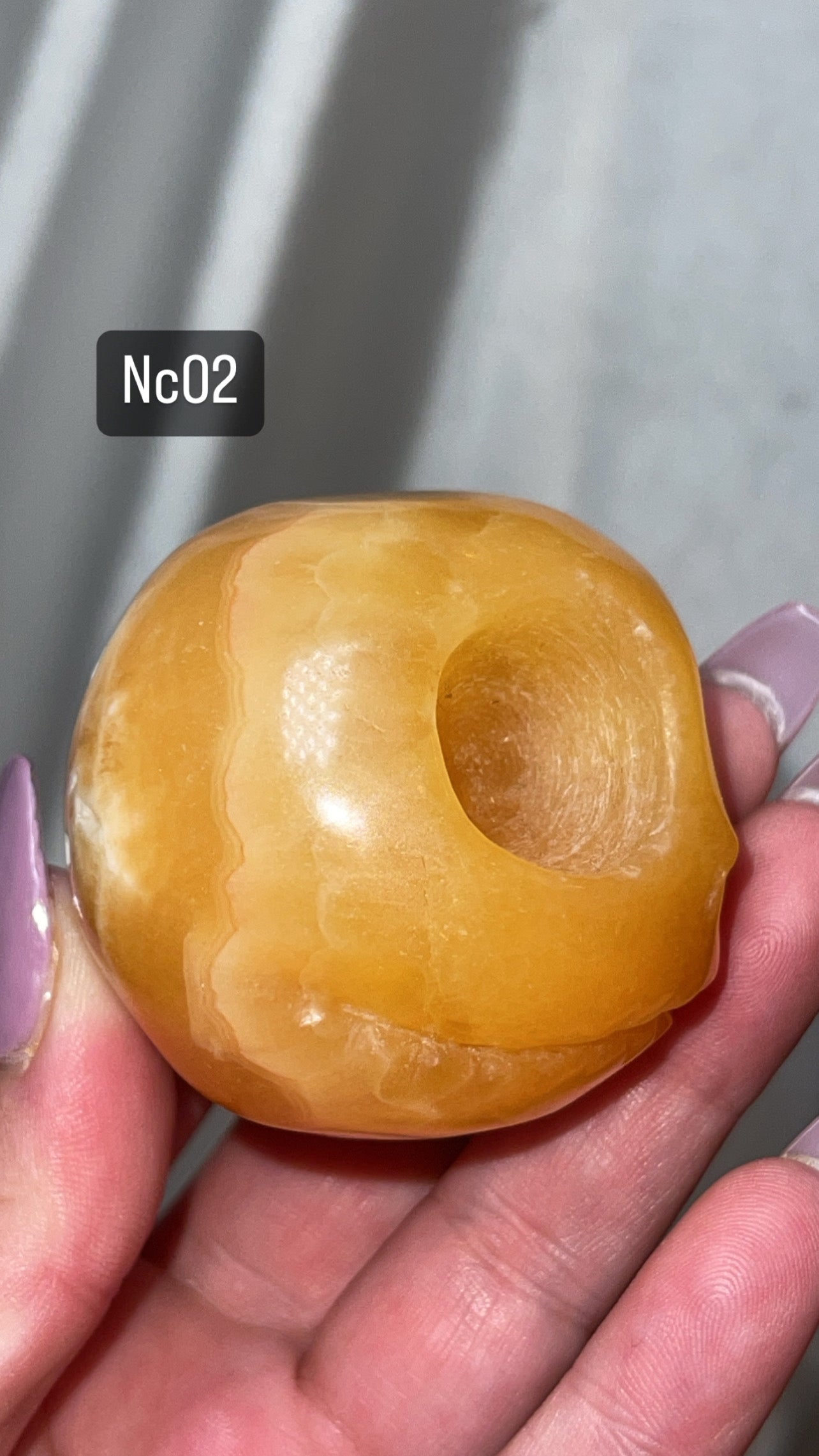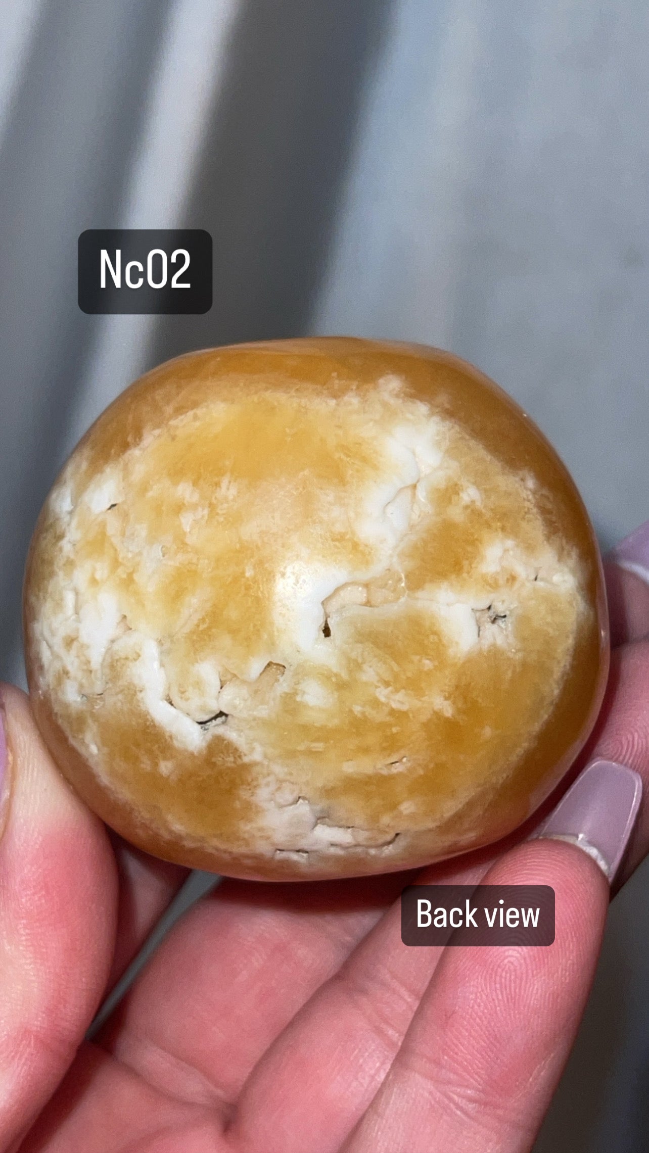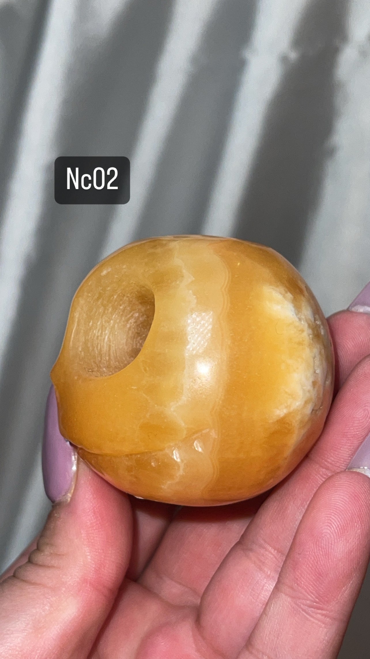 Nc02- Orange calcite (self stands) 2 inches by 2 inches.