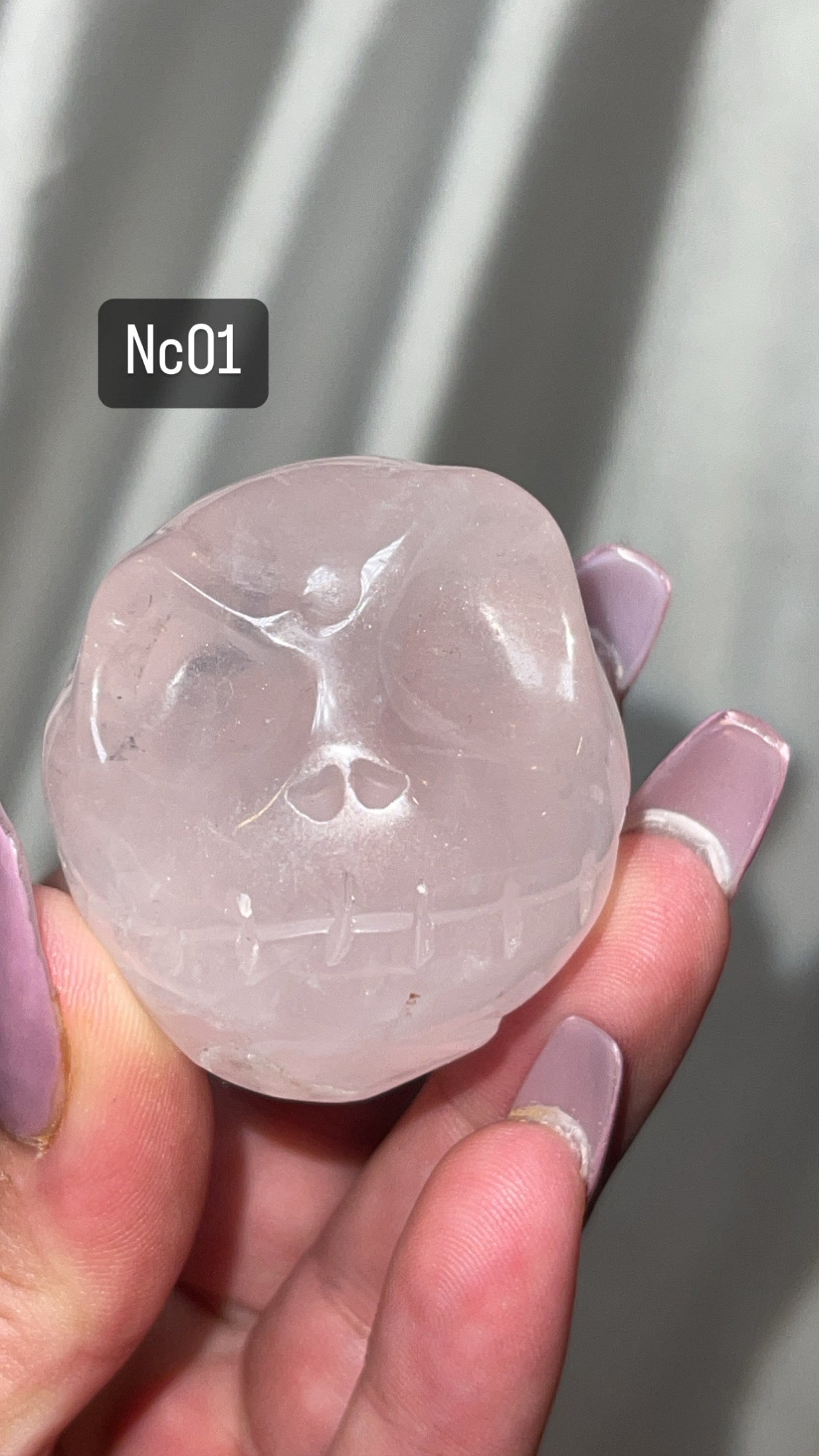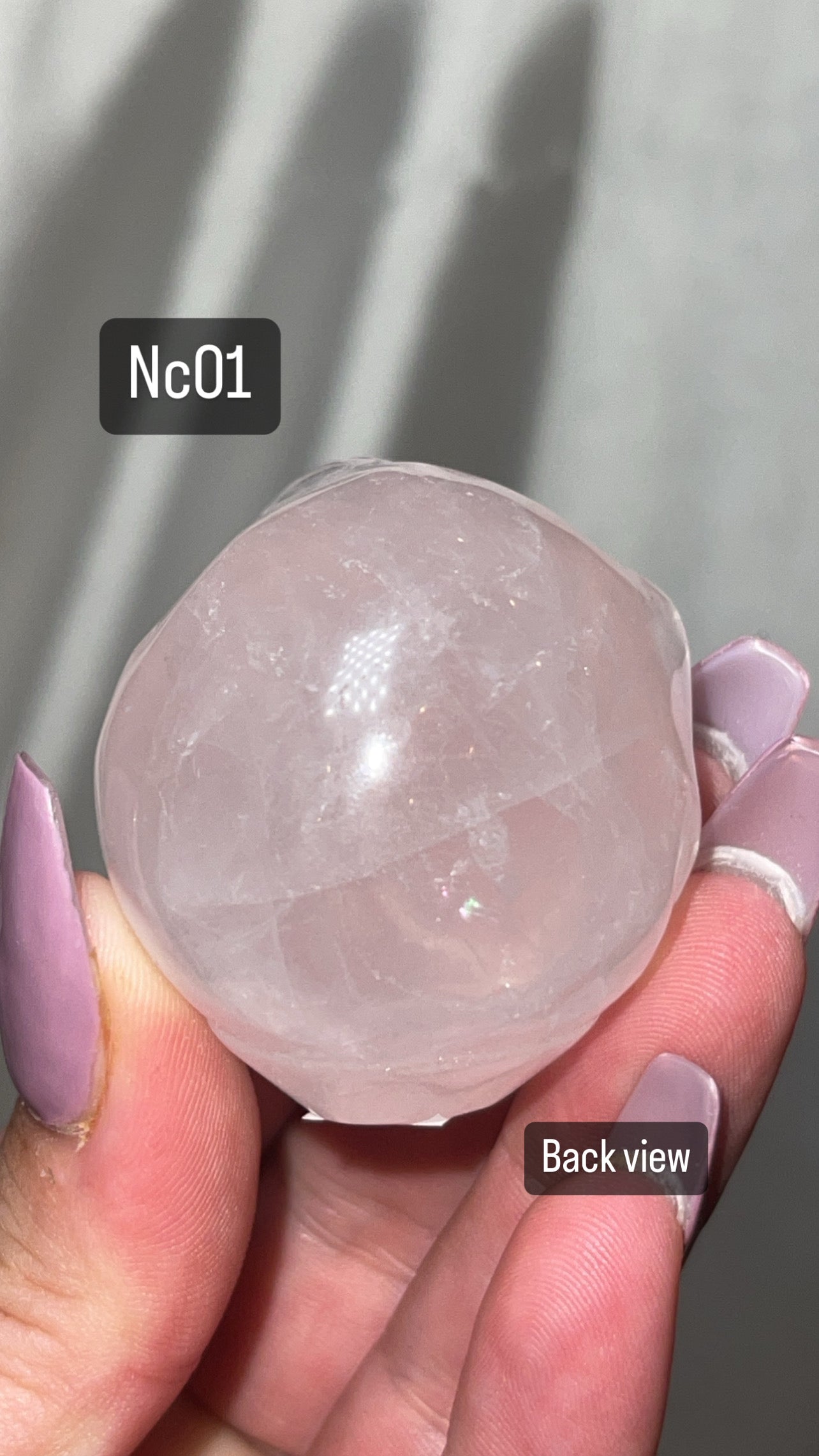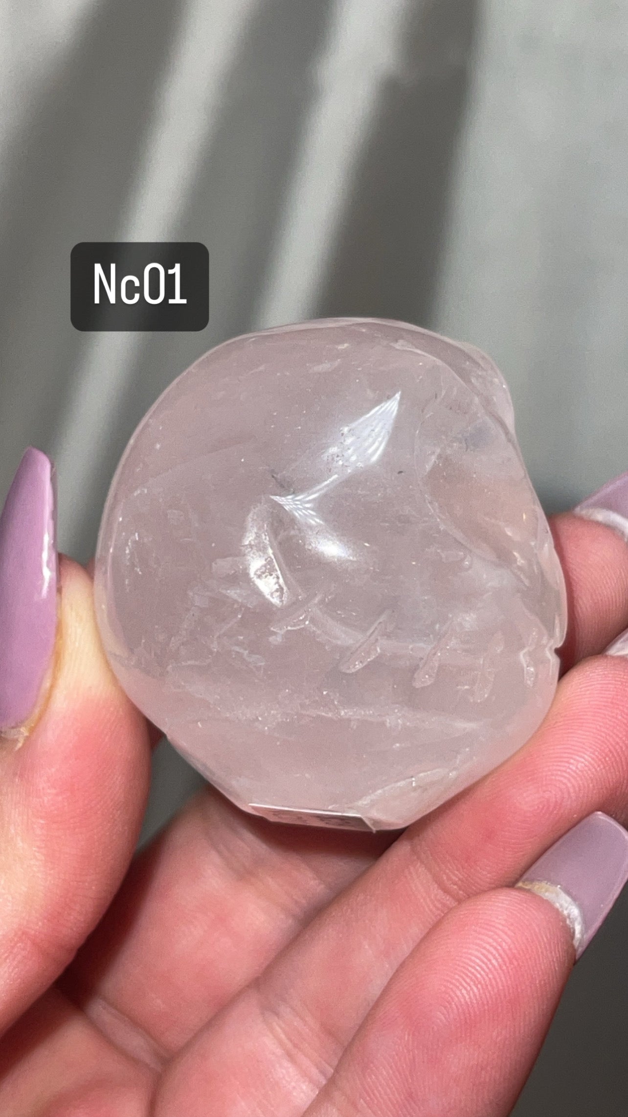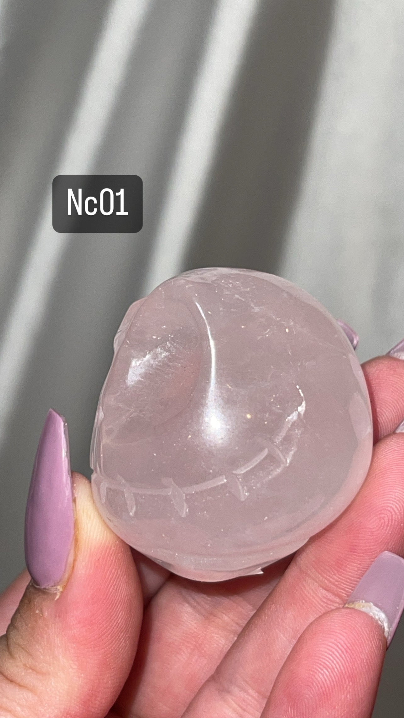 Nc01- rose quartz Jack (self stands) 1.5 inches by 1.75 inches.