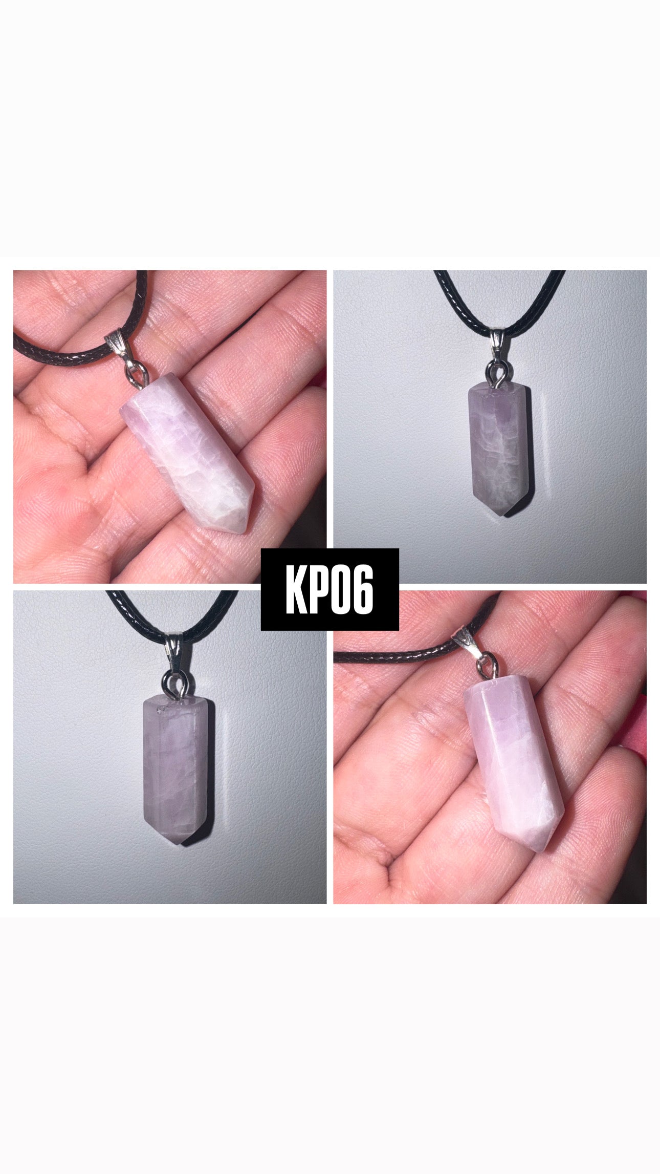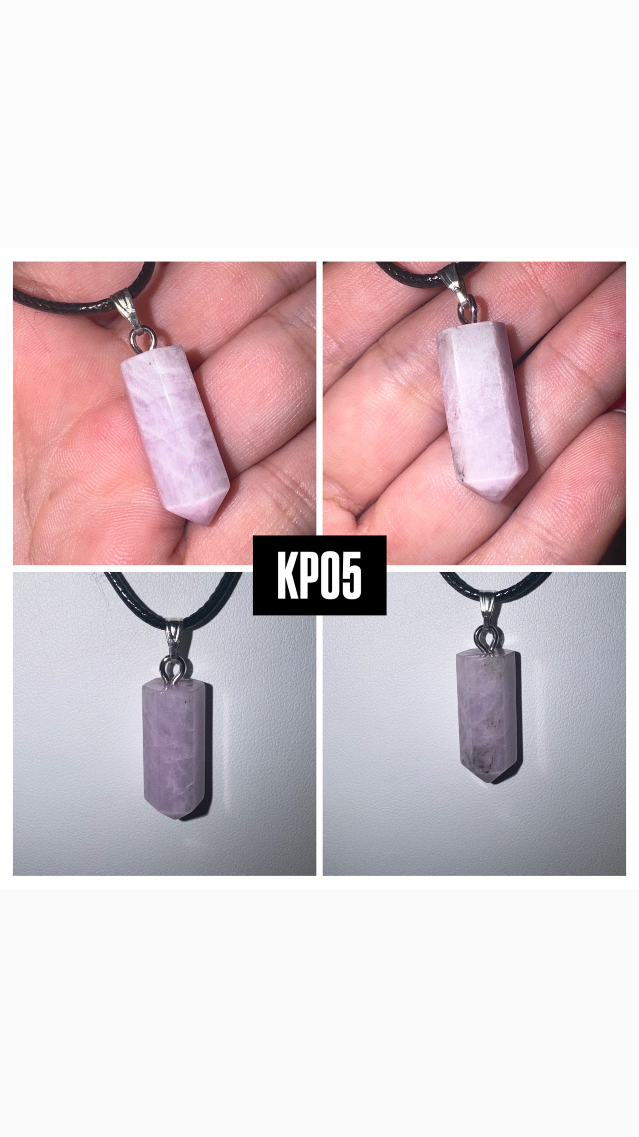 1- Kunzite point pendant on 18 inch black leather cord