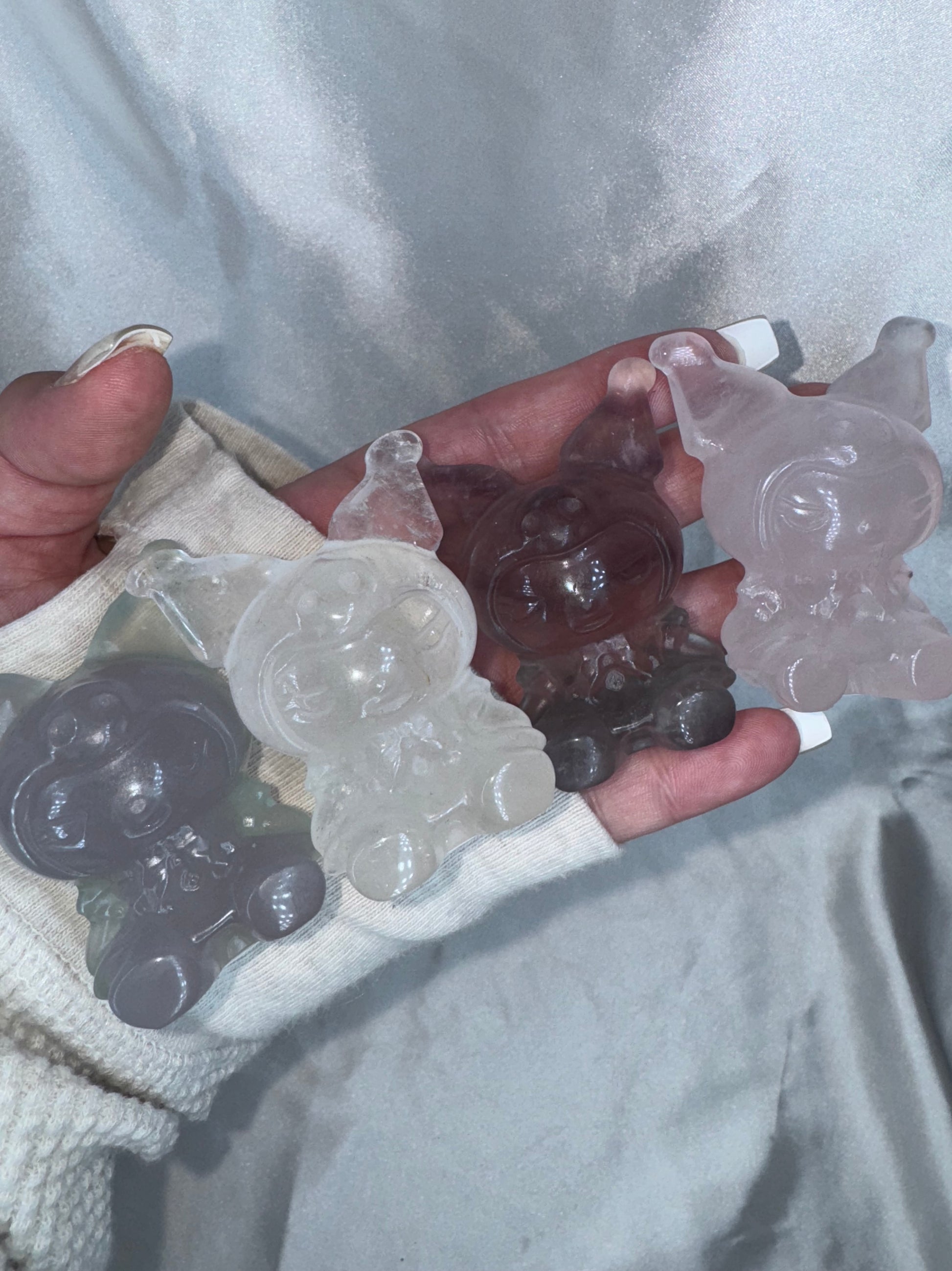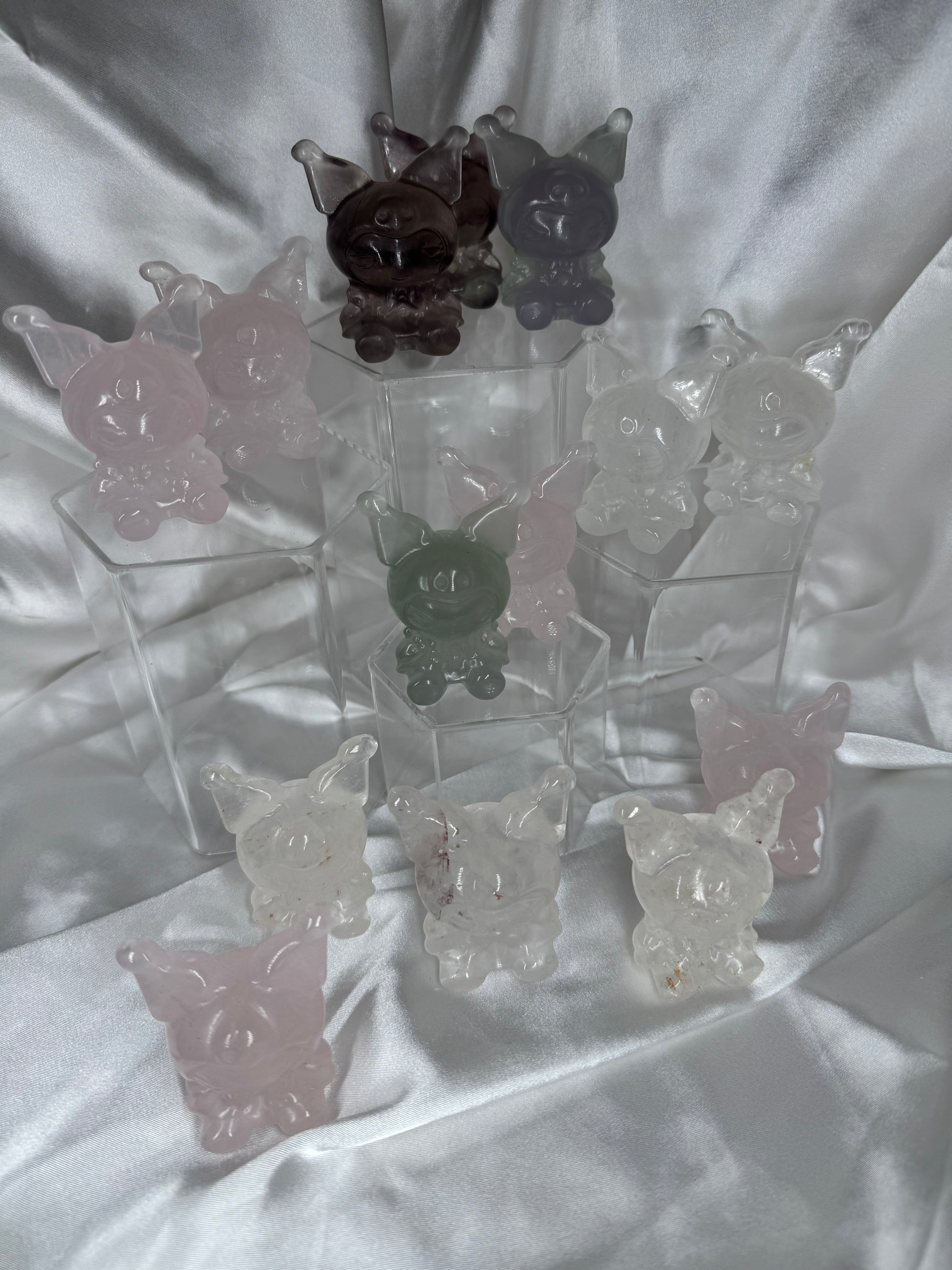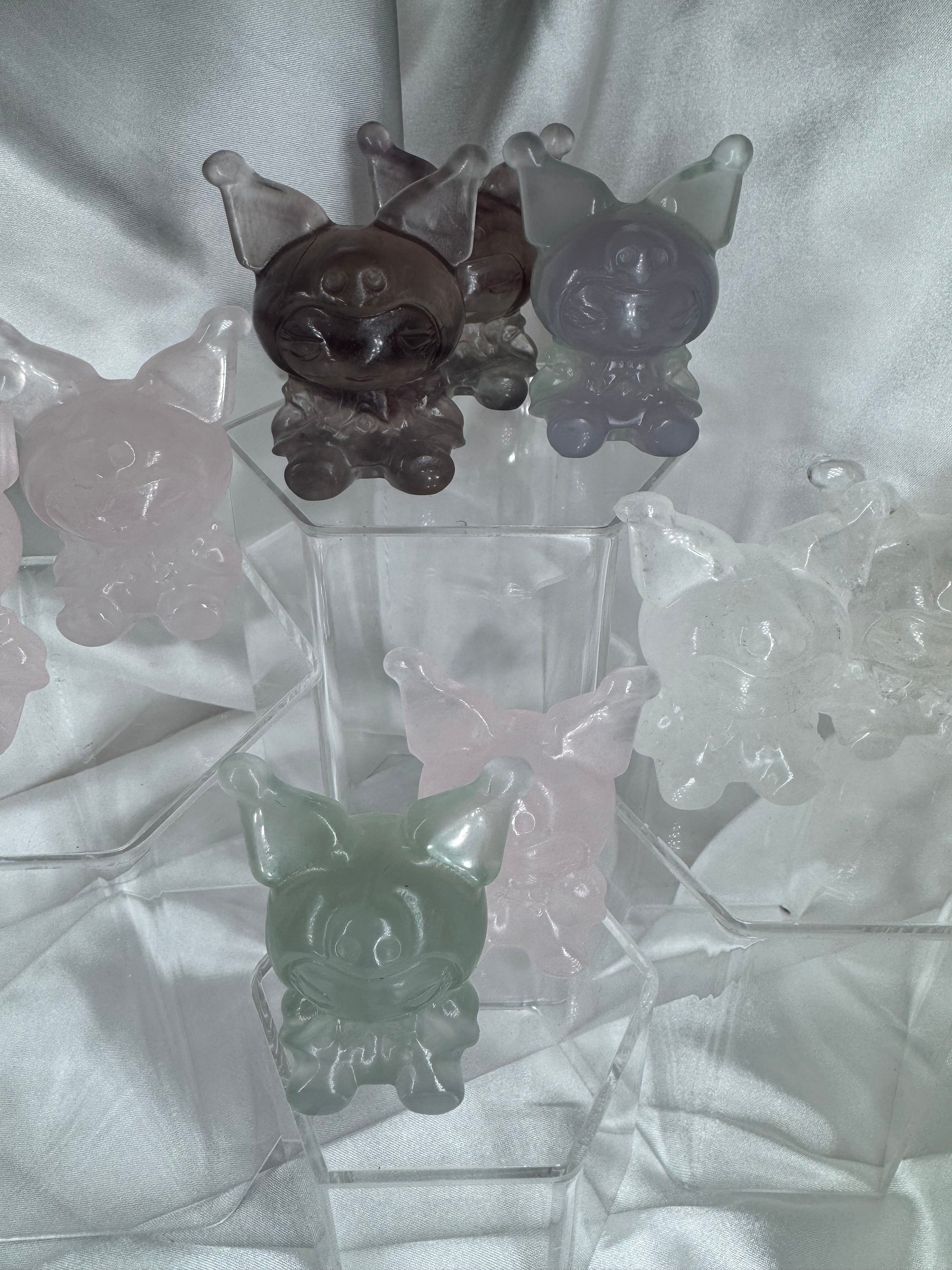 1- Kuromi Carving (choose stone: fluorite, clear quartz, or rose quartz)