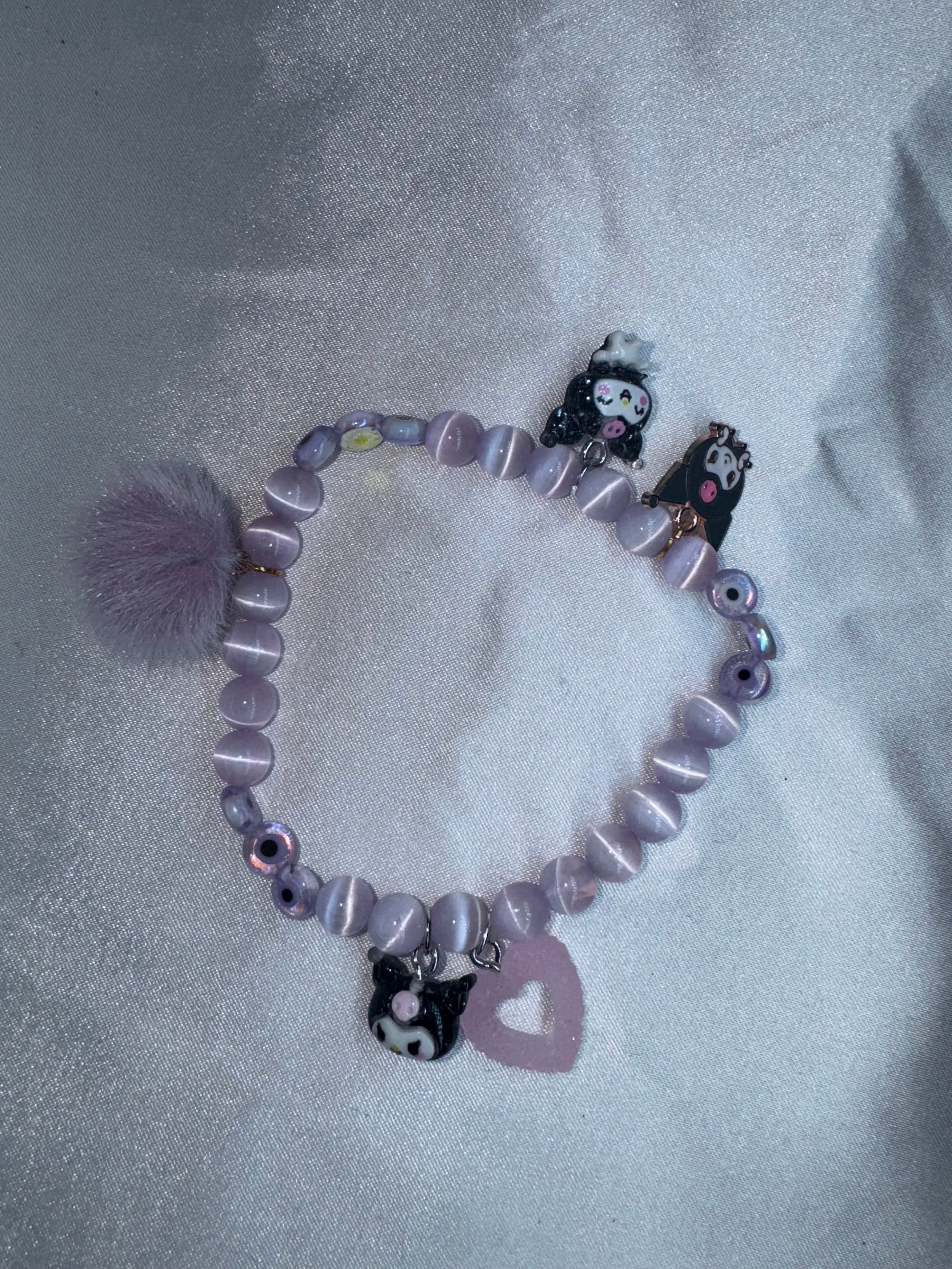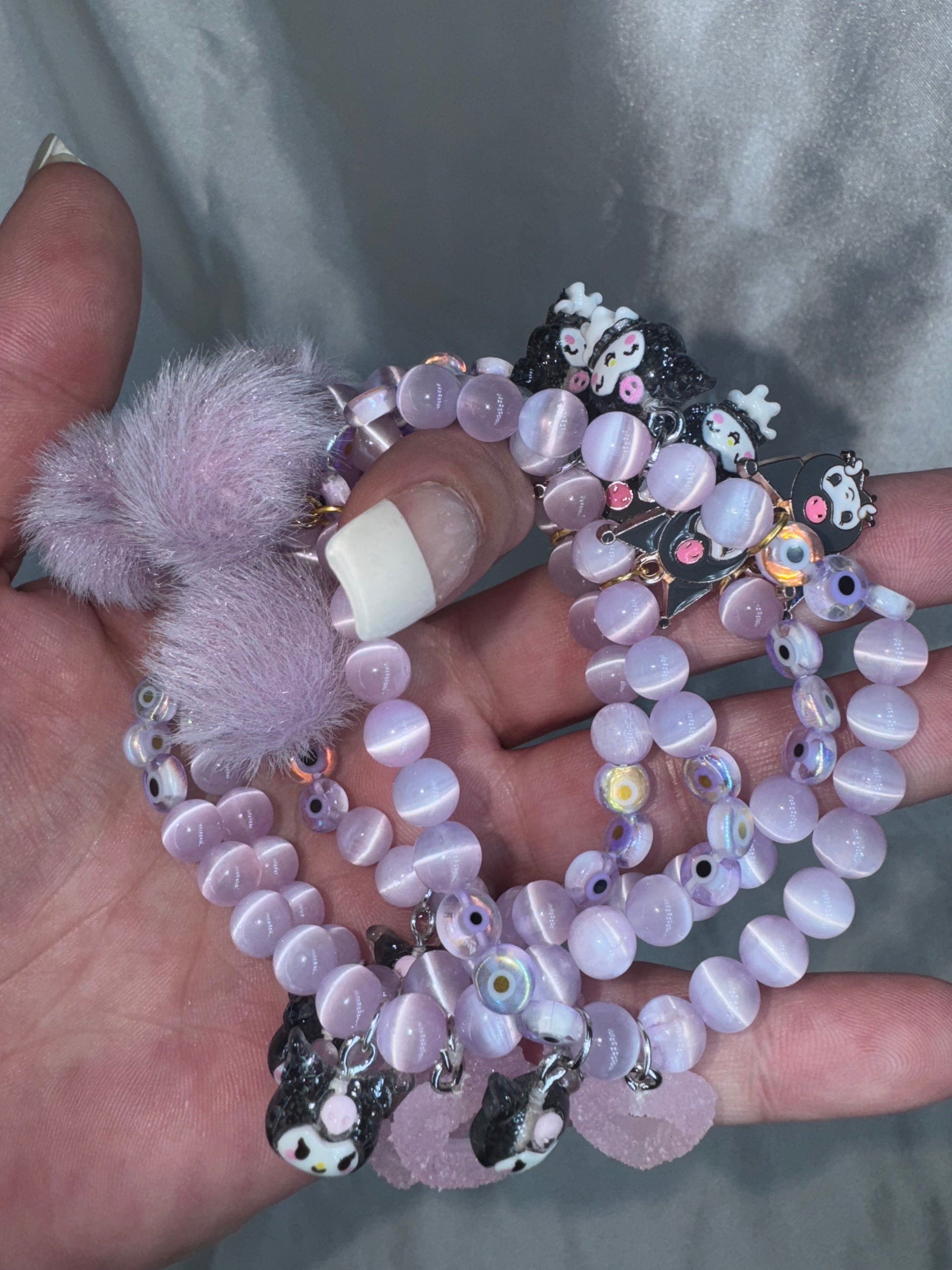1- Kuromi themed purple selenite (dyed) bracelet (approximately 6mm)