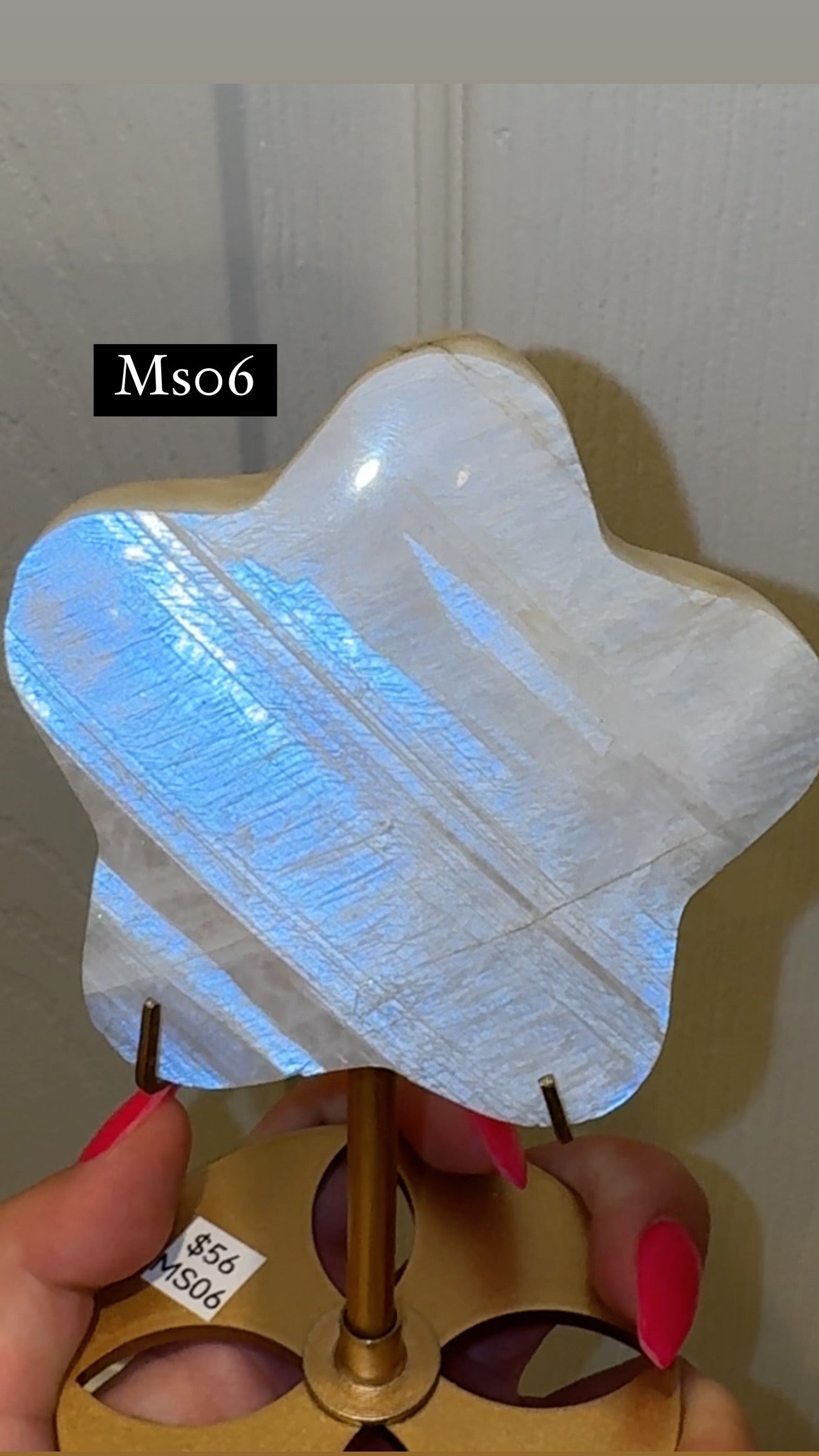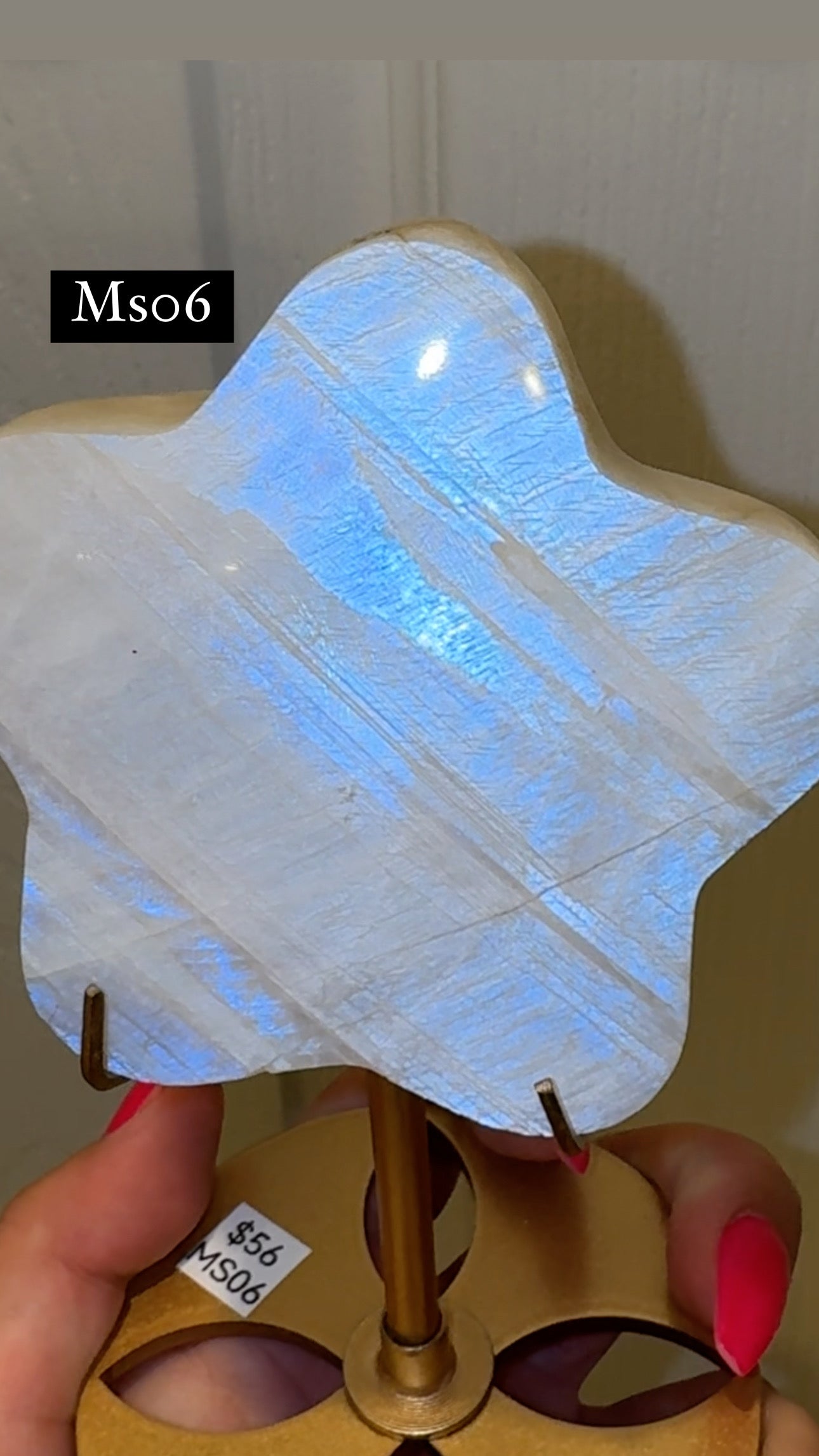 1- blue flash moonstone star on stand