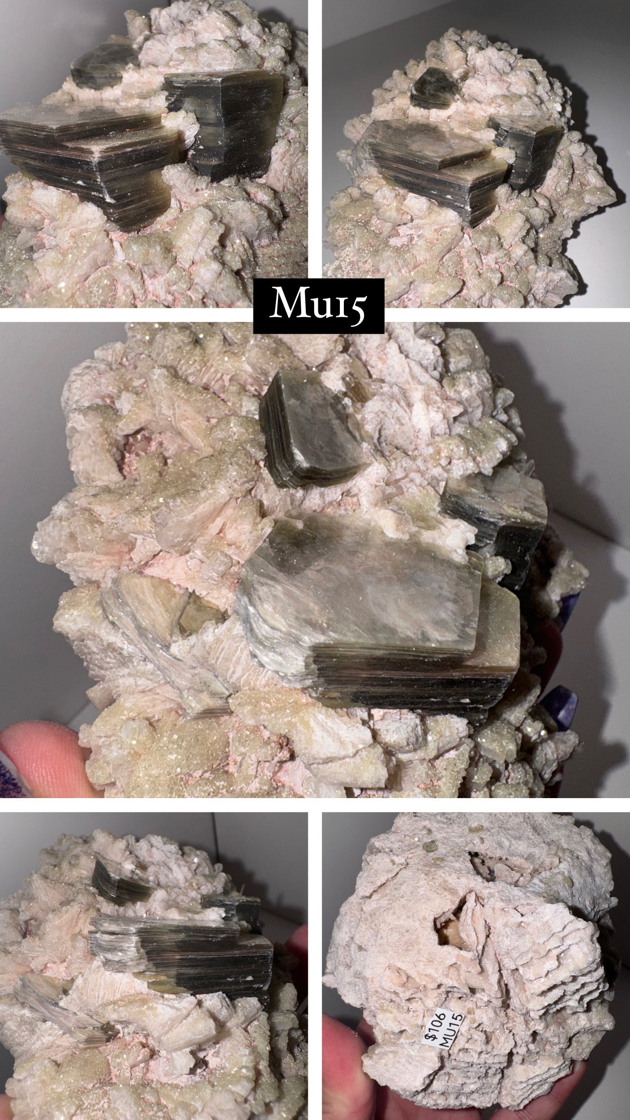 1- Muscovite mice on Albite with druzy calcite specimen from Brazil