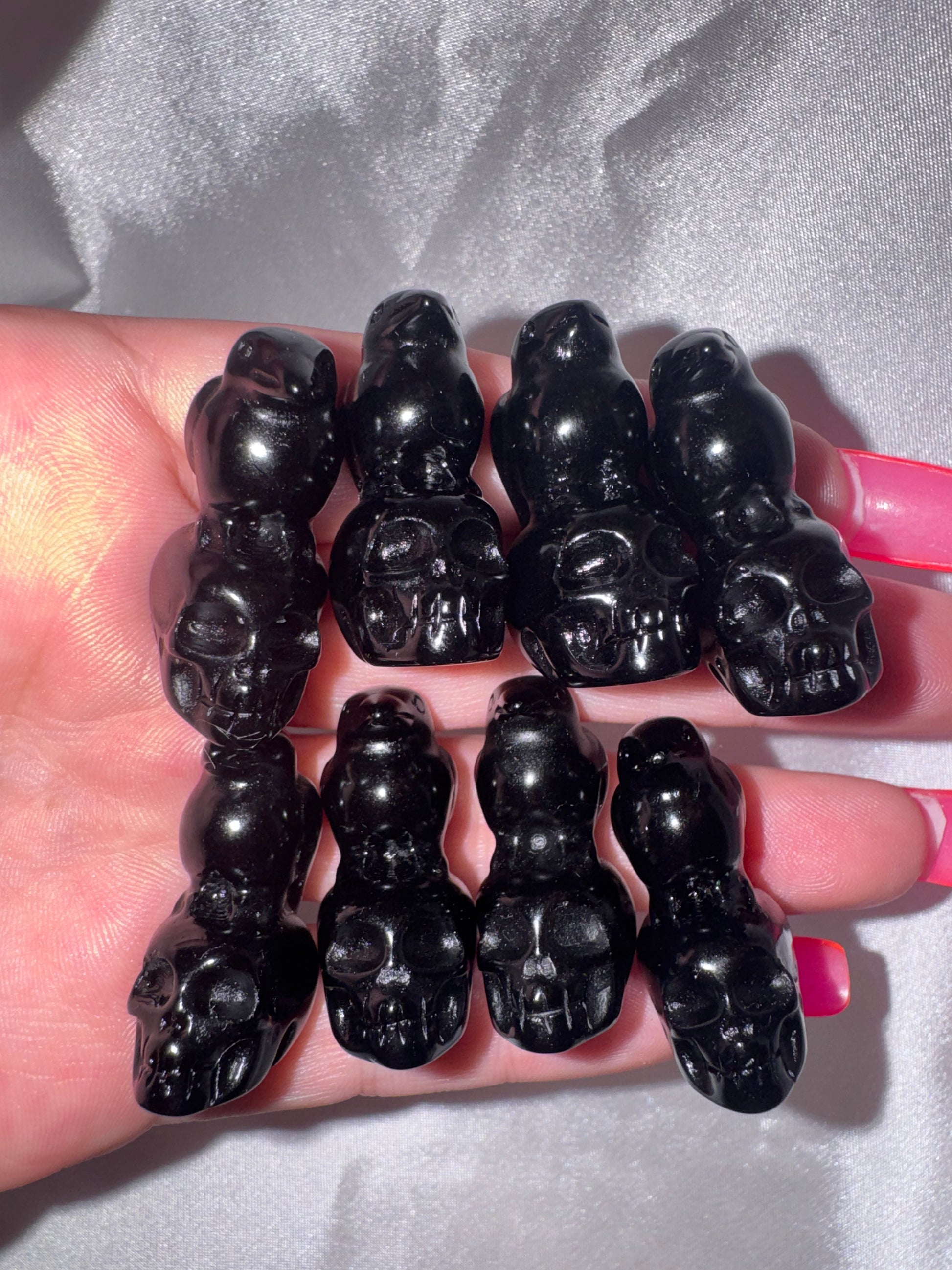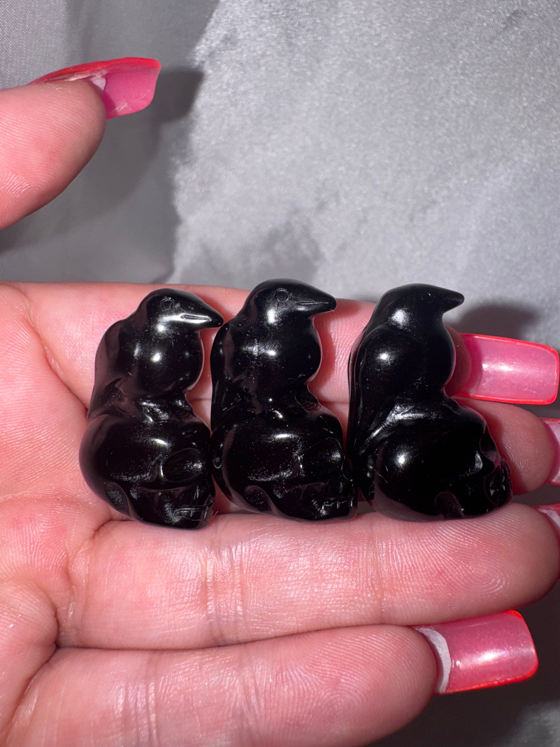 1- Obsidian Raven/crow on skull small carving