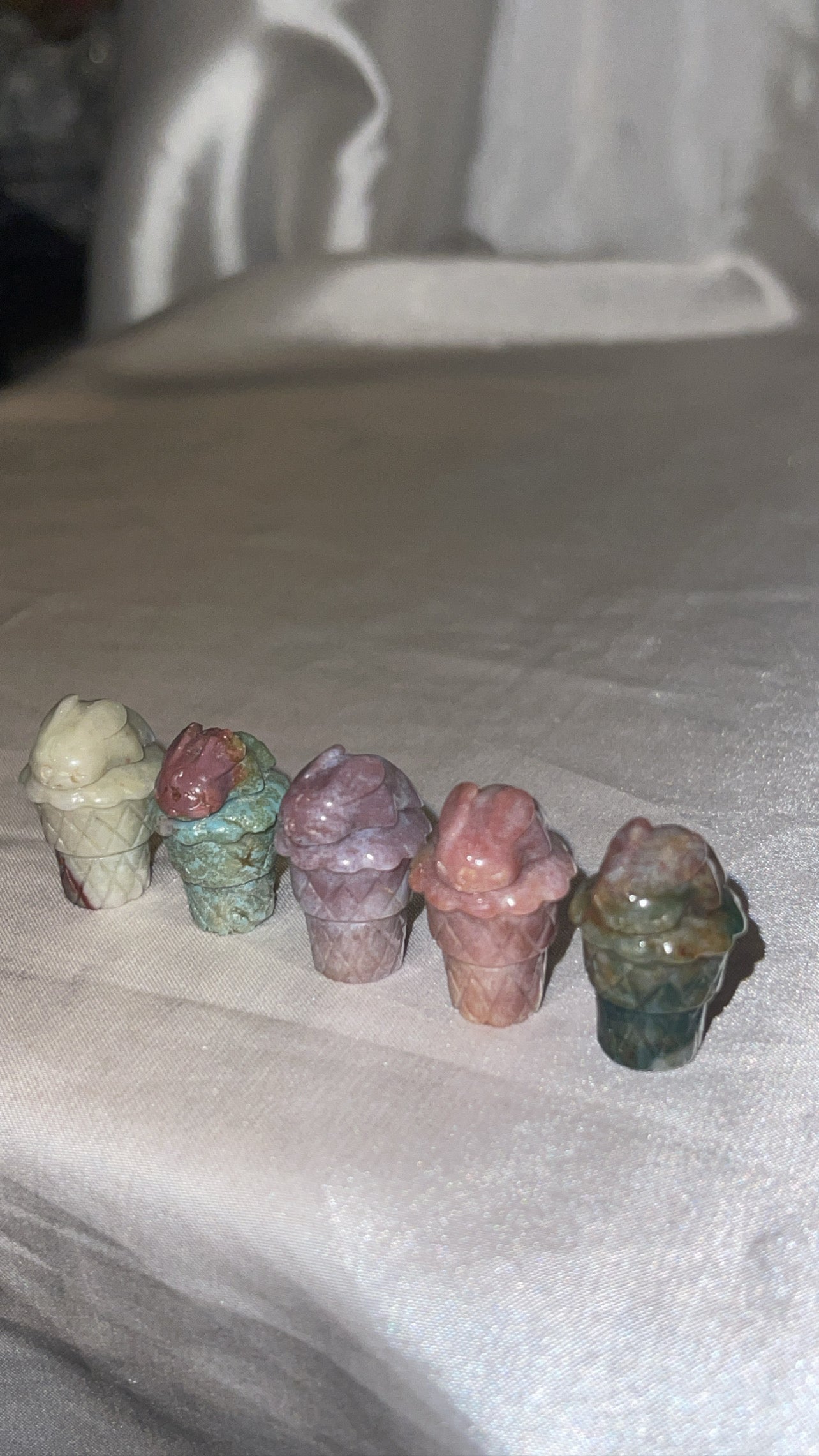 Approximately 17mm x 23mm for snake, 15mm x 38mm for alpaca, and 15mm x 25mm for bunny ice creams.