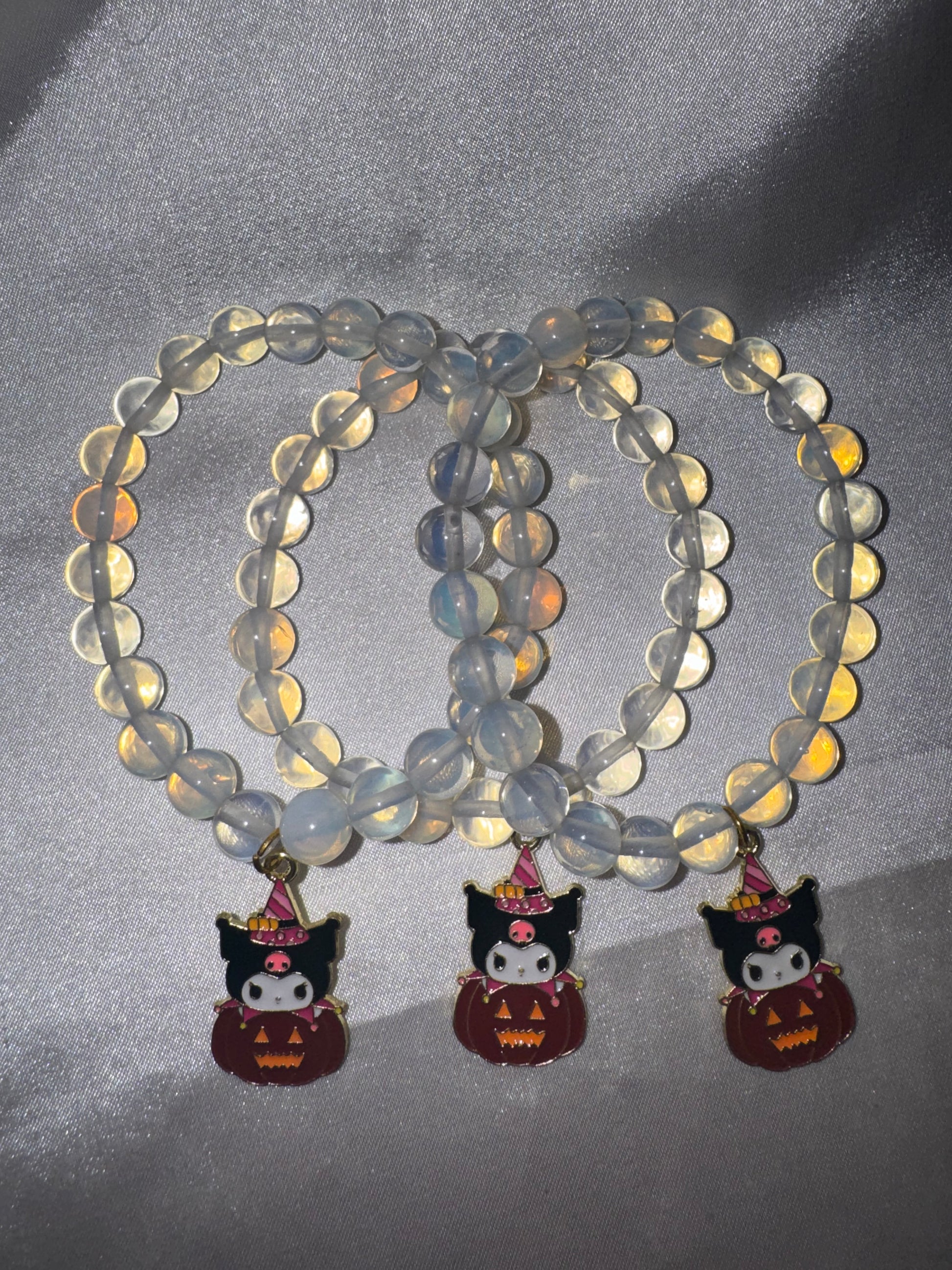 1- Opalite 8mm bracelet with Kuromi Pumpkin charm