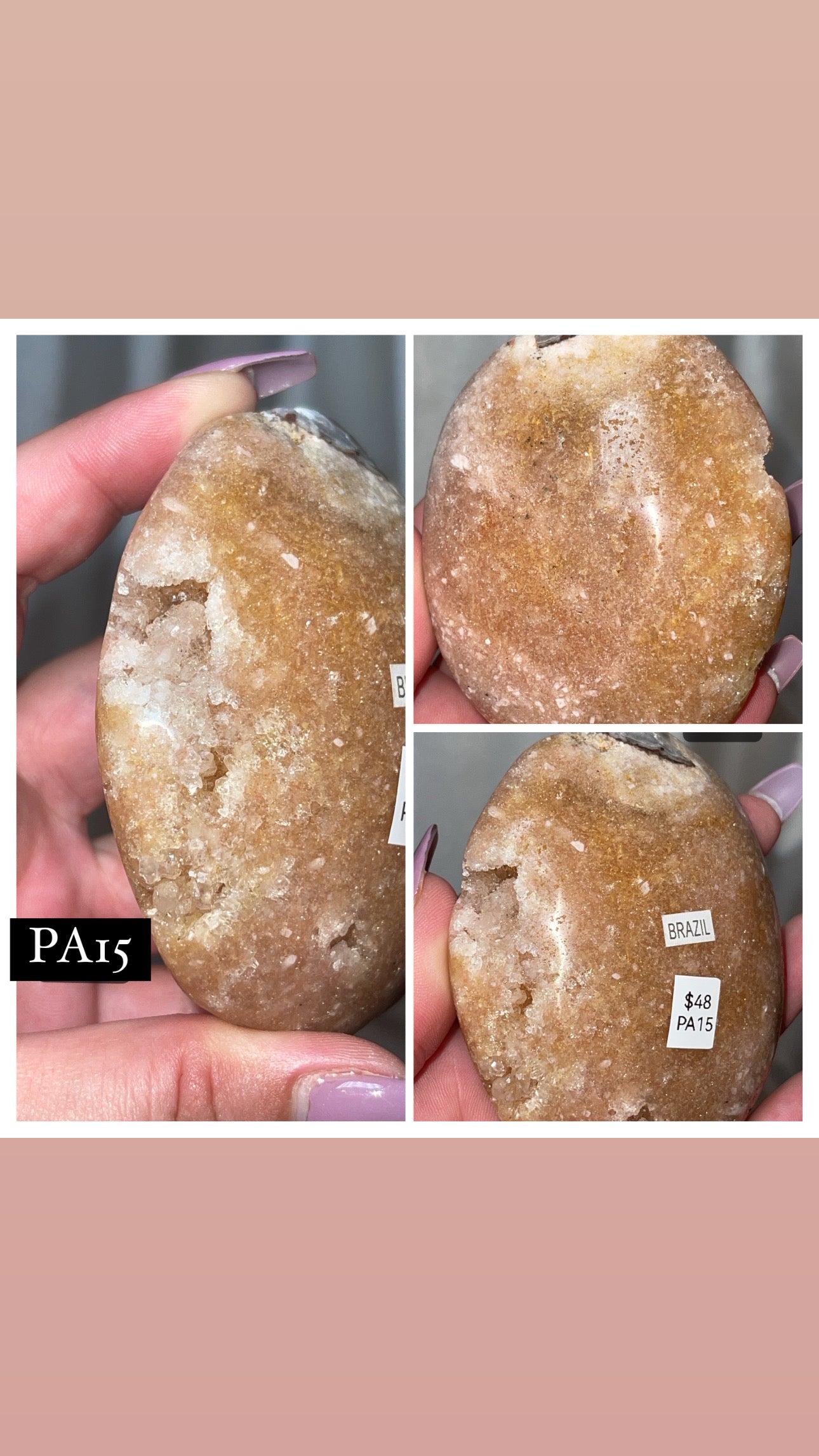 1- pink amethyst XL palmstone