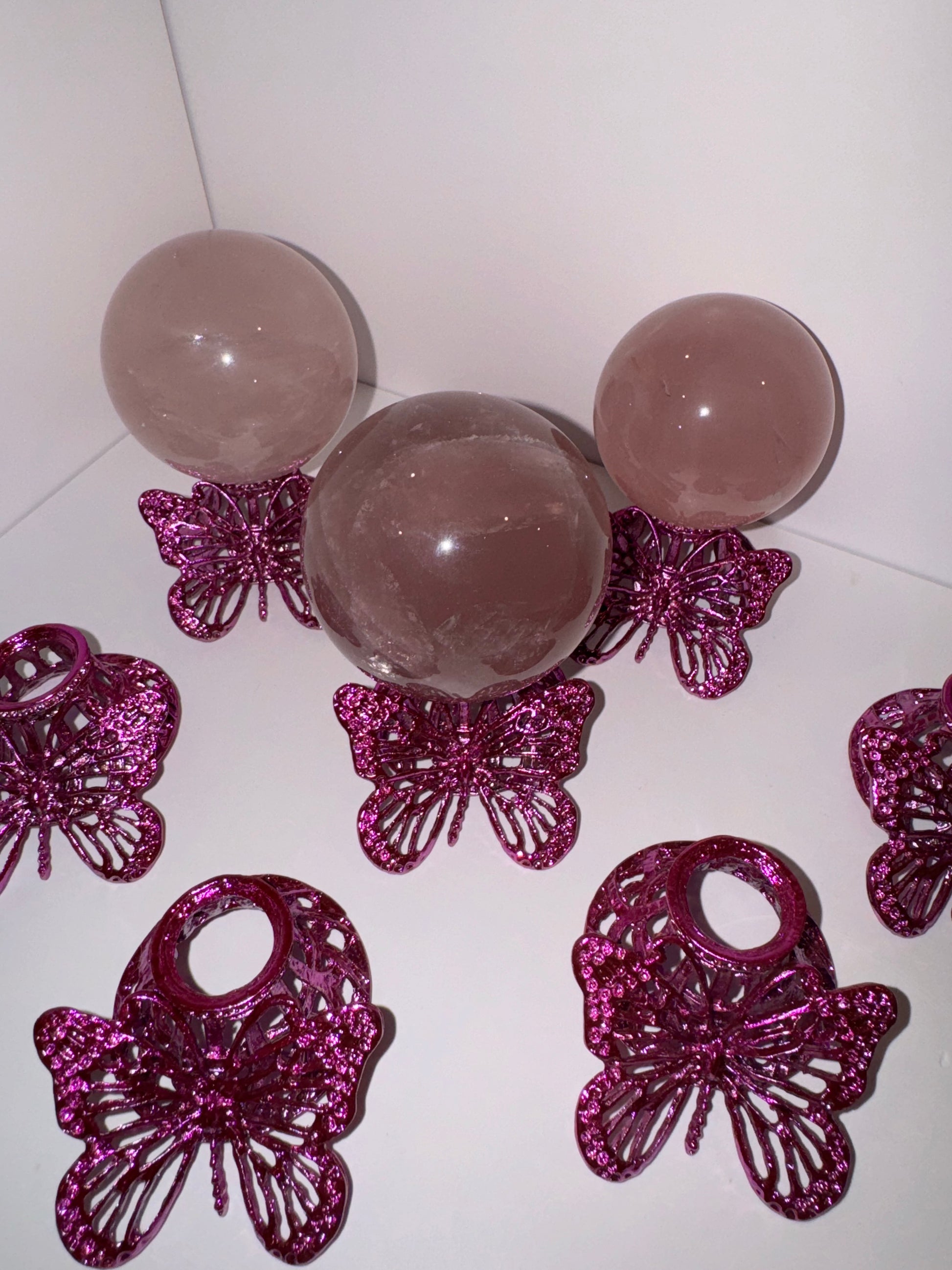 1- metal pink colored butterfly sphere stand (no sphere included)