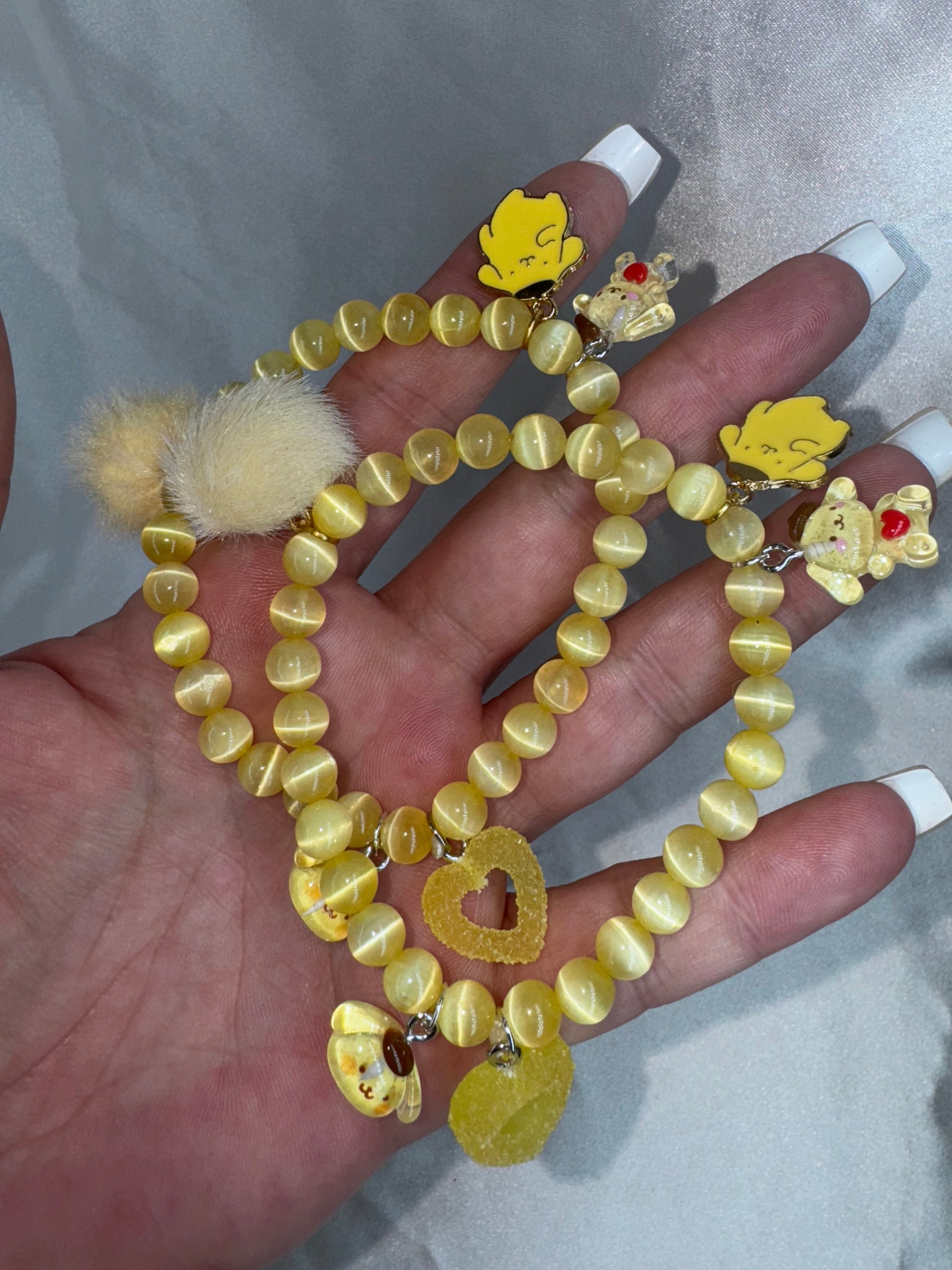 1- Pompompurin themed yellow selenite (dyed) bracelet (approximately 6mm)