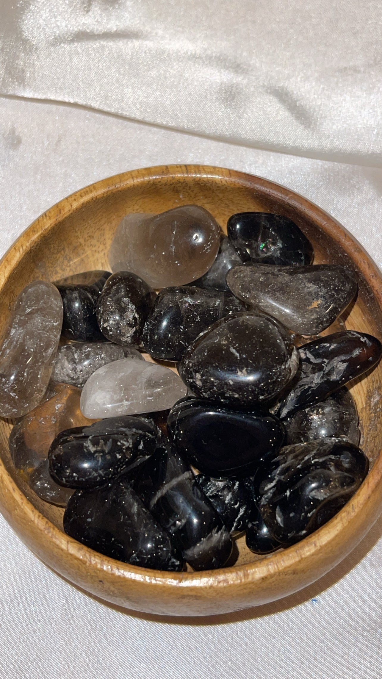 1- Quartz tumble (choose clear quartz or smoky quartz)