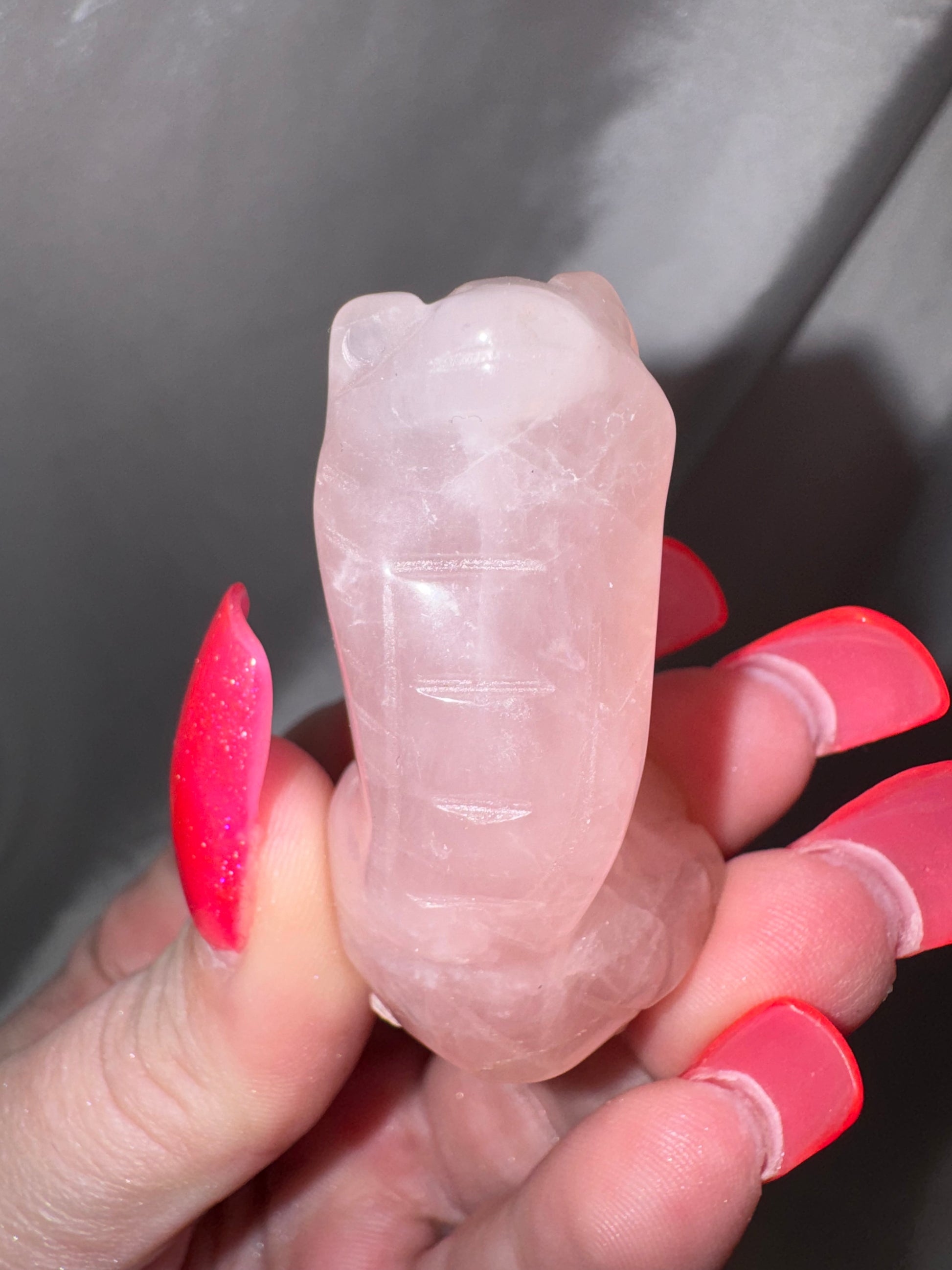 1- Rose Quartz Standing Snake Carving