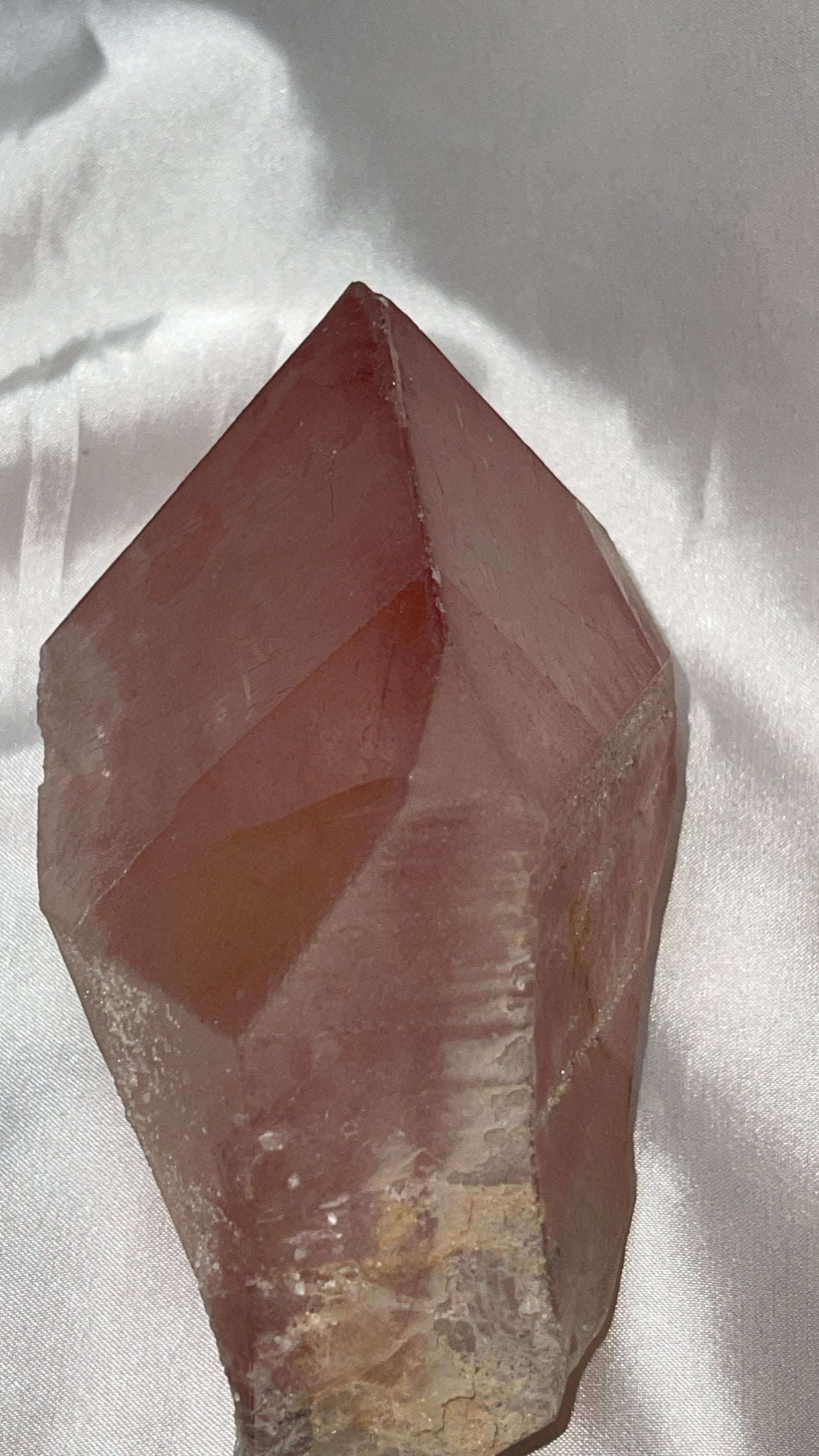 1- XL Scarlet Temple Lemurian (Pink Lemurian) point from Brazil (self stands)