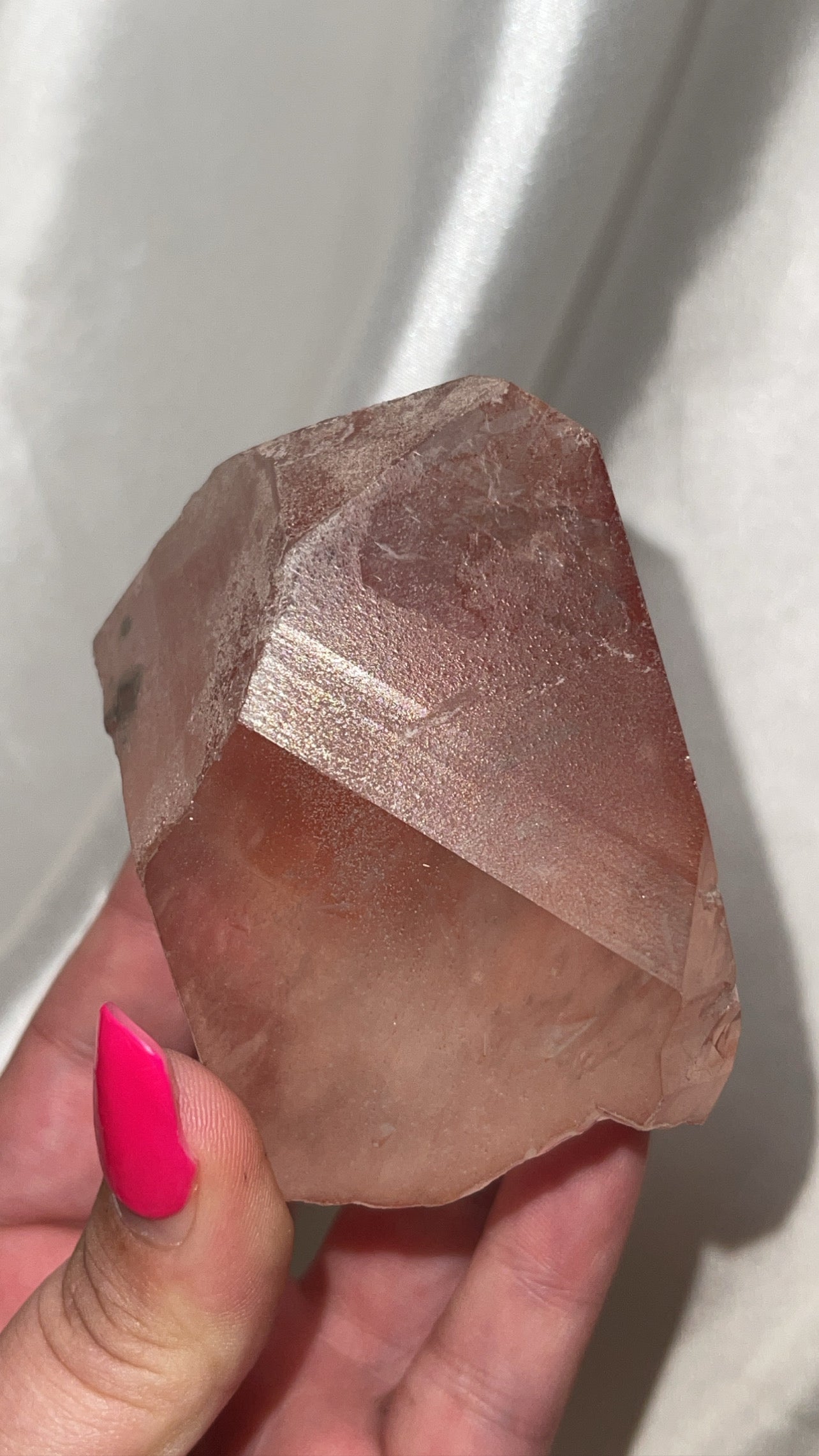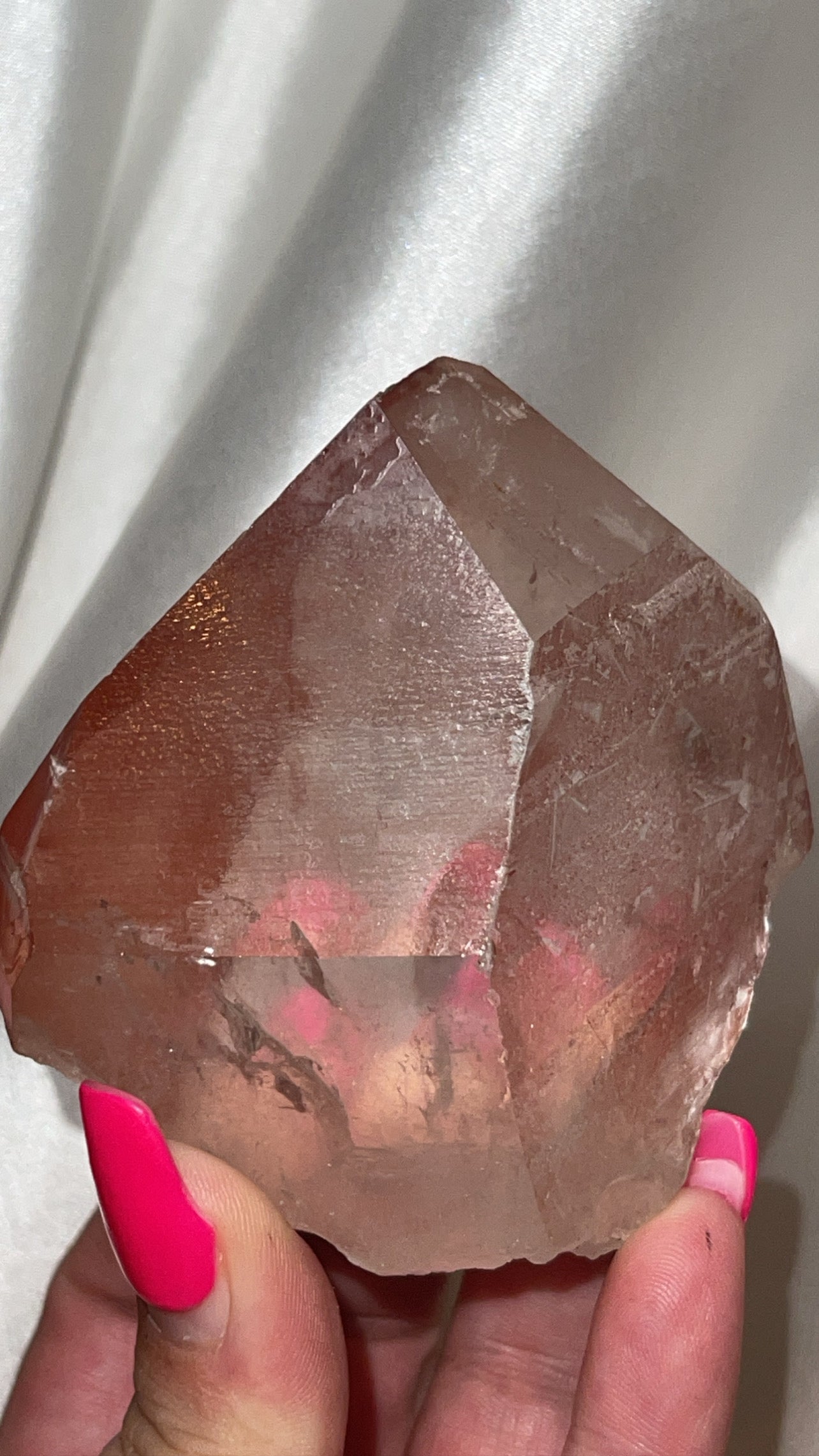 1- XL Scarlet Temple Lemurian (Pink Lemurian) point from Brazil (self stands)