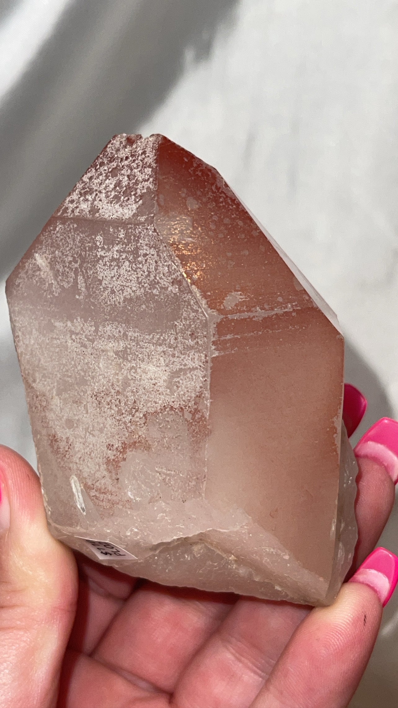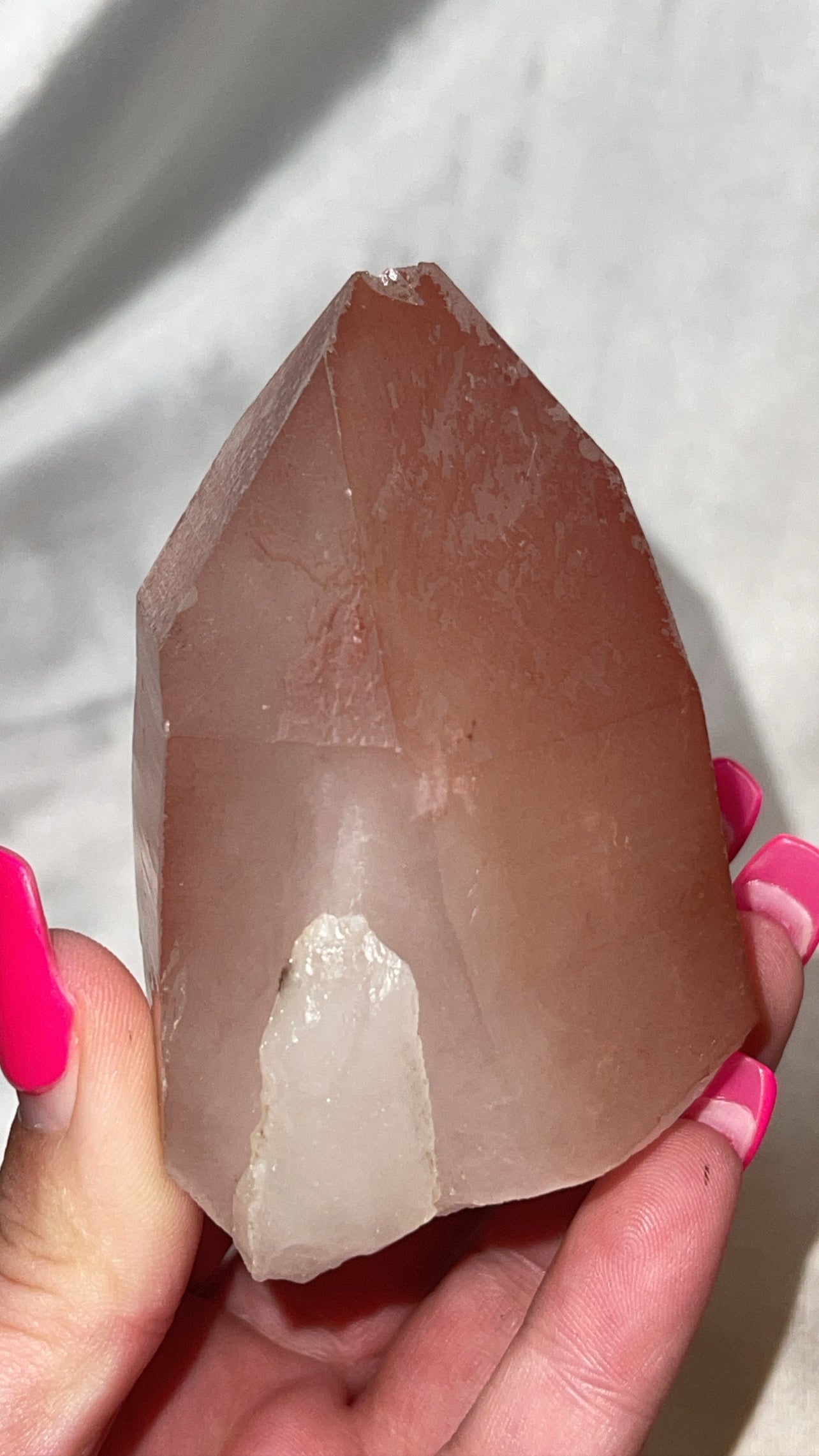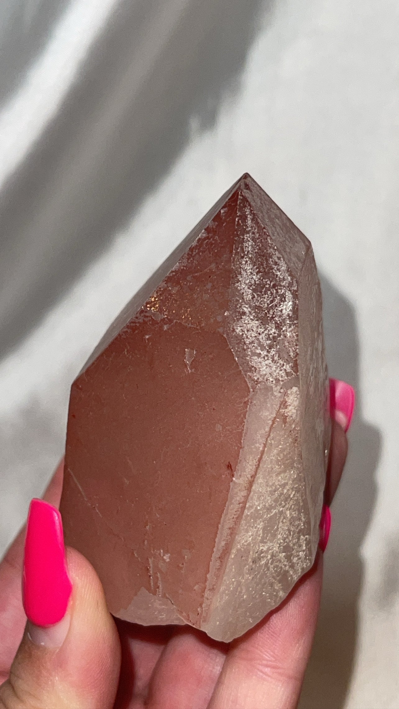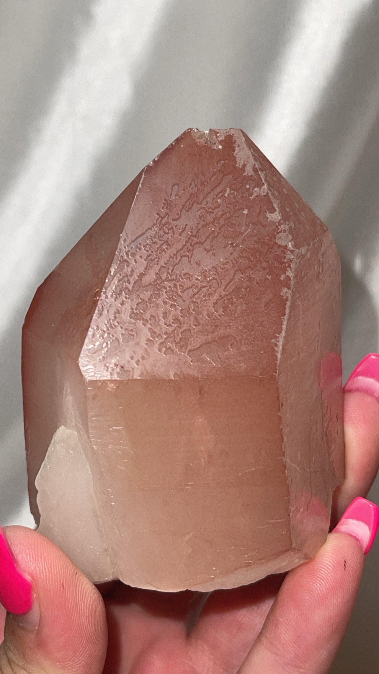 1- XL Scarlet Temple Lemurian (Pink Lemurian) point from Brazil (self stands)