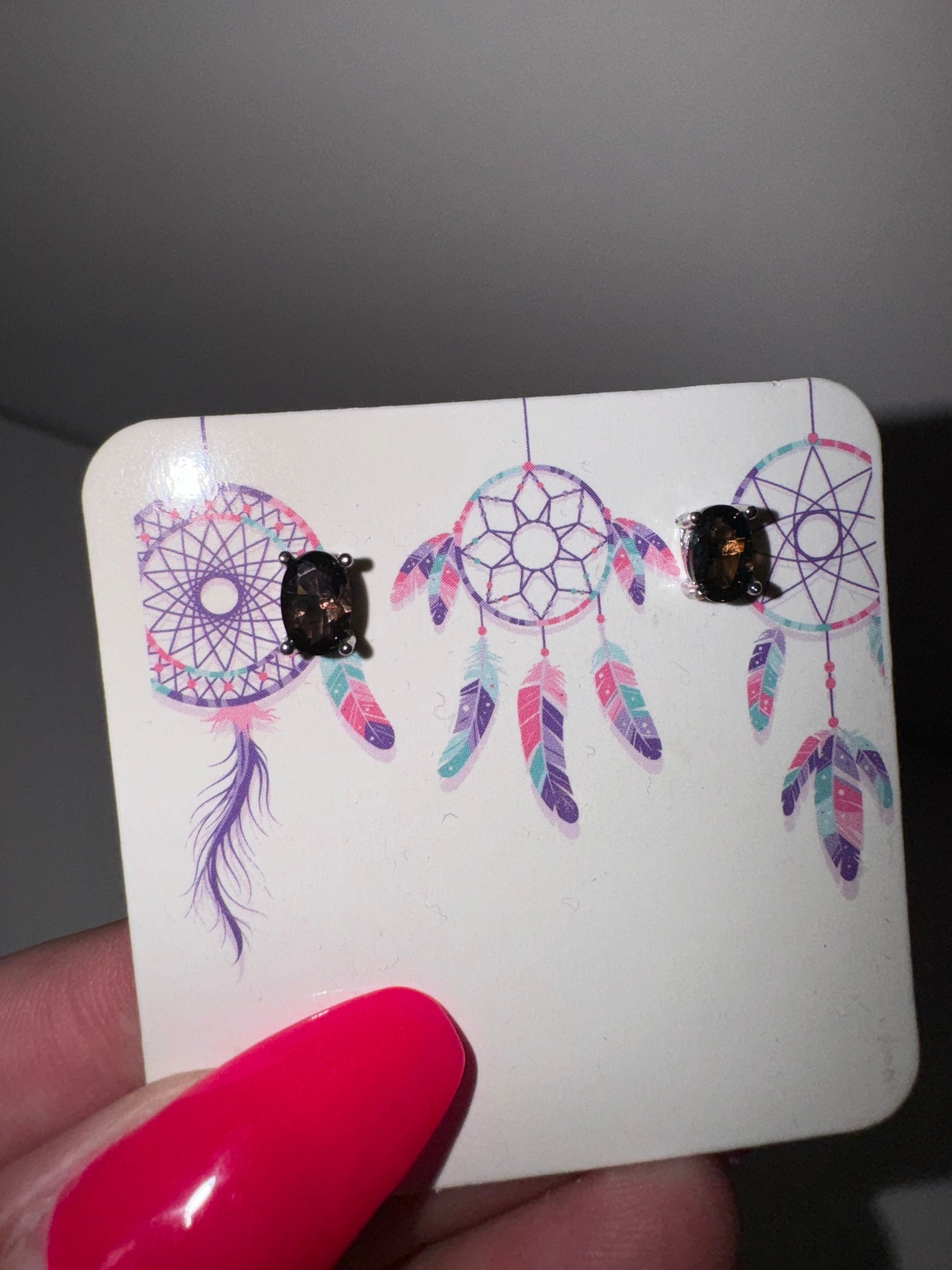 1- pair of Smoky Quartz AAA Faceted 925 Sterling Silver stud earrings