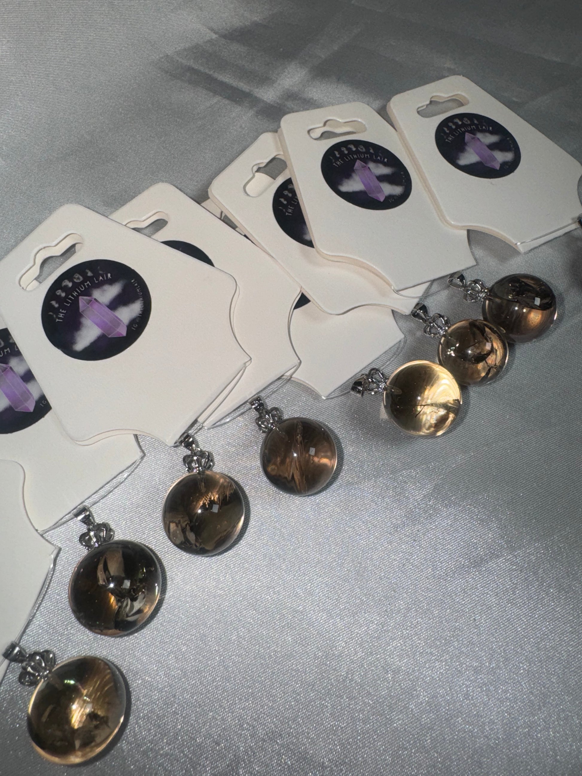 1- smoky quartz rainbow sphere pendant (925 sterling silver)