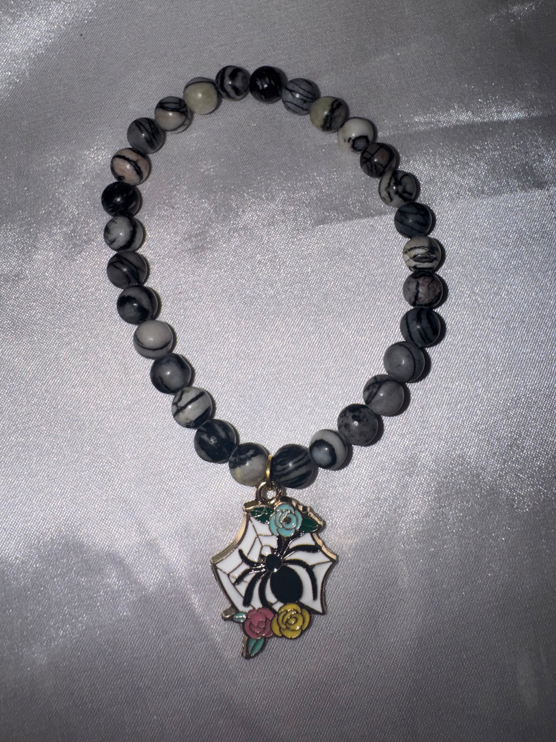 1- Spiderweb Jasper 6mm bracelet with Spider charm