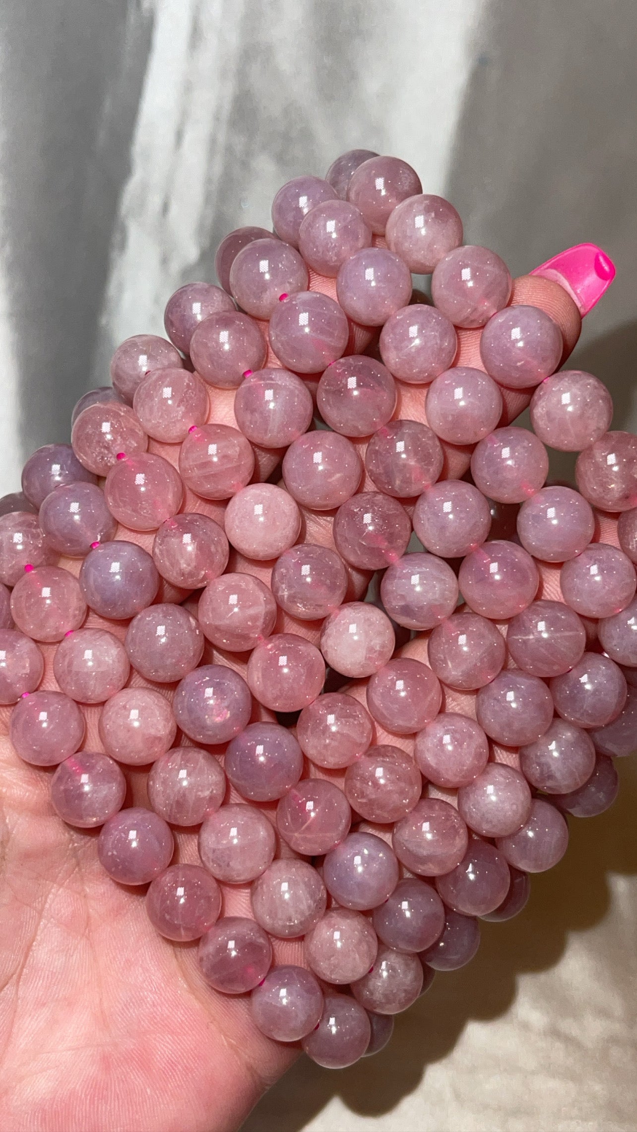 1- 10mm Lavender Rose Quartz bracelet with asterisms