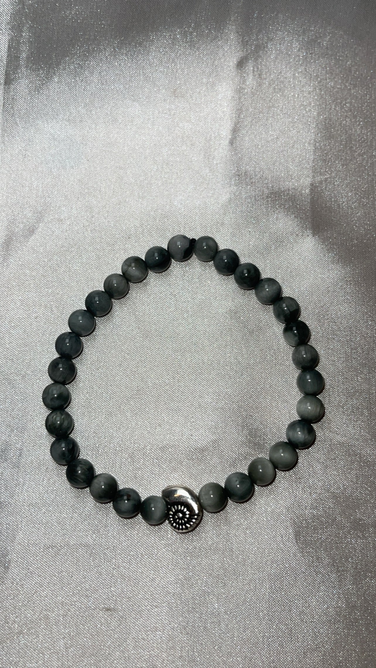 1- 6mm Eagles eye Bracelet with silver Ammonite charm from Australia