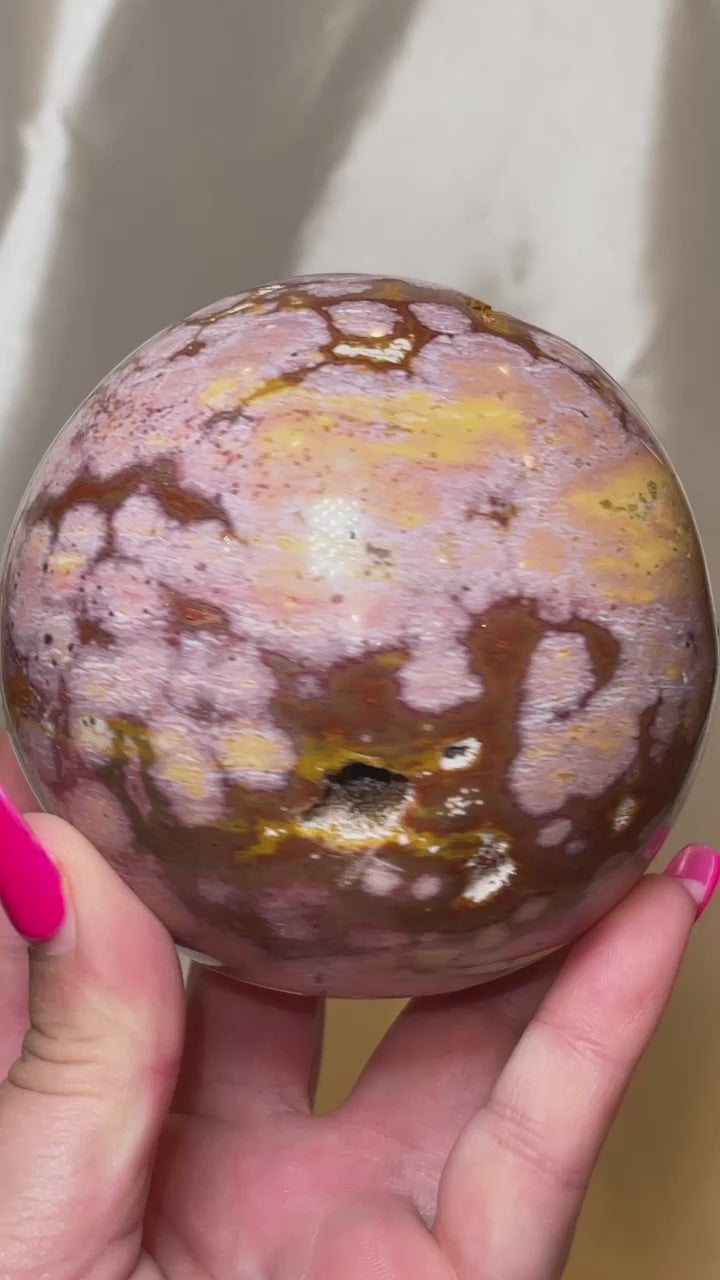 1- AAA grade pink Ocean Jasper XL sphere (discounted due to sphere being slightly misshapen)